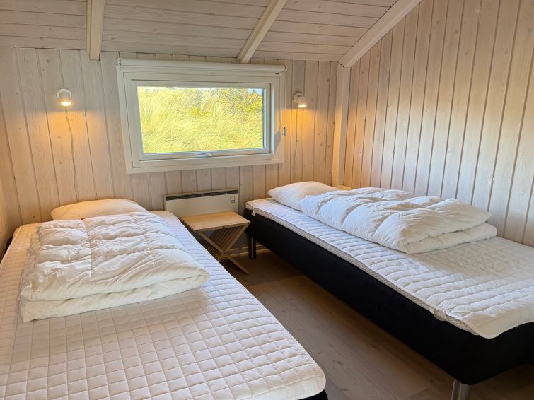 "Velena" - from the sea in Western Jutland", 3 rom hus 93 m2. Passer for 6 voksne + 1 barn. Stue med, TV, CD-spiller, stereoanlegg og DVD. 1 rom med, 1 dobbeltseng. 1 rom med, 1 dobbeltseng. 1 rom med 2 senger. Kjøkken (stekeovn, oppvaskmaskin, 4 induksjonskomfyr, mikrobølgeovn, frys). Dusj/WC, boblebad. Terrasse 5 m2, dekt. Fasiliteter: høy barnestol barneseng (ekstra). Internett (trådløs LAN [WLAN]). Vennligst merk: røykfri bolig. Max kjæledyr/små hunder tillatt 3 kjæledyr/små hunder tillatt.
