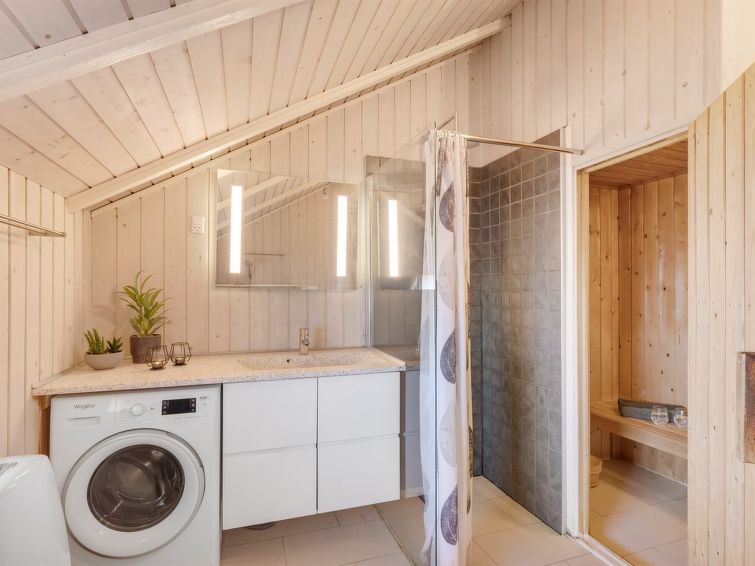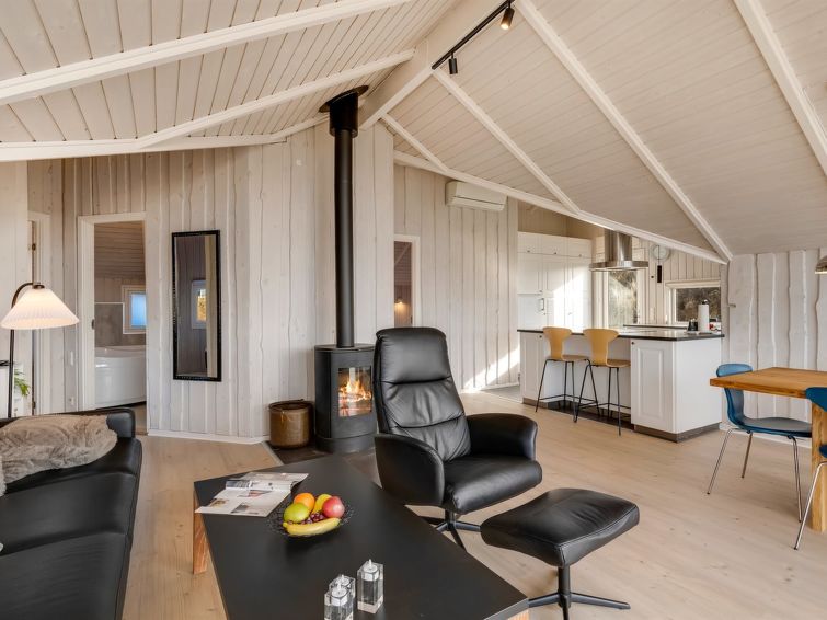 "Velena" - from the sea in Western Jutland", 3 rom hus 93 m2. Passer for 6 voksne + 1 barn. Stue med, TV, CD-spiller, stereoanlegg og DVD. 1 rom med, 1 dobbeltseng. 1 rom med, 1 dobbeltseng. 1 rom med 2 senger. Kjøkken (stekeovn, oppvaskmaskin, 4 induksjonskomfyr, mikrobølgeovn, frys). Dusj/WC, boblebad. Terrasse 5 m2, dekt. Fasiliteter: høy barnestol barneseng (ekstra). Internett (trådløs LAN [WLAN]). Vennligst merk: røykfri bolig. Max kjæledyr/små hunder tillatt 3 kjæledyr/små hunder tillatt.