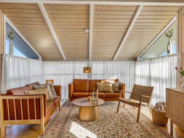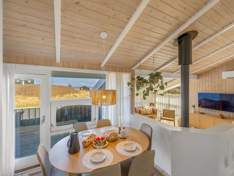 "Venja" - 200m from the sea in NW Jutland", 3 rom hus 100 m2. Passer for 6 voksne + 1 barn. Stue med, TV, video, radio og CD-spiller. 1 rom med, 1 dobbeltseng. 1 rom med, 1 dobbeltseng. 1 rom med, 1 x 2 køysenger. Kjøkken (stekeovn, oppvaskmaskin, 4 keramiske kokeplater, mikrobølgeovn, frys). Dusj/WC. Utsikt av havet. Fasiliteter: høy barnestol barneseng (ekstra). Internett (trådløs LAN [WLAN]). Max kjæledyr/små hunder tillatt 2 kjæledyr/små hunder tillatt.