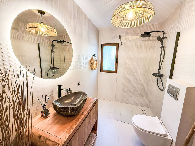 "Verano", 5 rom hus 120 m2 på 2 etasjer. Komfortabelt møbler: stue/spisestue med, åpen peis, satelit-TV, digital TV, flatskjerms TV, DVD og air-conditioning. Utgang til sitteplass i hagen, til badebassenget. 2 rom, hvert rom med, 1 dobbeltseng (160 cm, lengde 200 cm). Sovealkove med, 1 dobbel sovesoffa (160 cm, lengde 190 cm). Åpent kjøkken (stekeovn, oppvaskmaskin, mikrobølgeovn). Bad/WC, dusj/WC. øverste etasje: (utendørs trapp), 1 rom med, 1 dobbeltseng (160 cm, lengde 200 cm), dusj/WC. Terrassemøbler, grill (flyttbar), liggestoler, sitteplass. Fasiliteter: vaskemaskin, høy barnestol barneseng for barn opp til 2 år. Internett (trådløs LAN [WLAN]). Parkeringsplass (overdekt) ved hbrukt. Vennligst merk: et dobbeltrom ligger utenfor leiligheten. Røykfri bolig. I stedet for et separat soverom er de enkelte soveplassene plassert i et åpent område (hems, alkove osv.). AT-438911-A