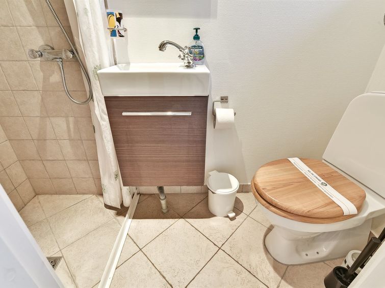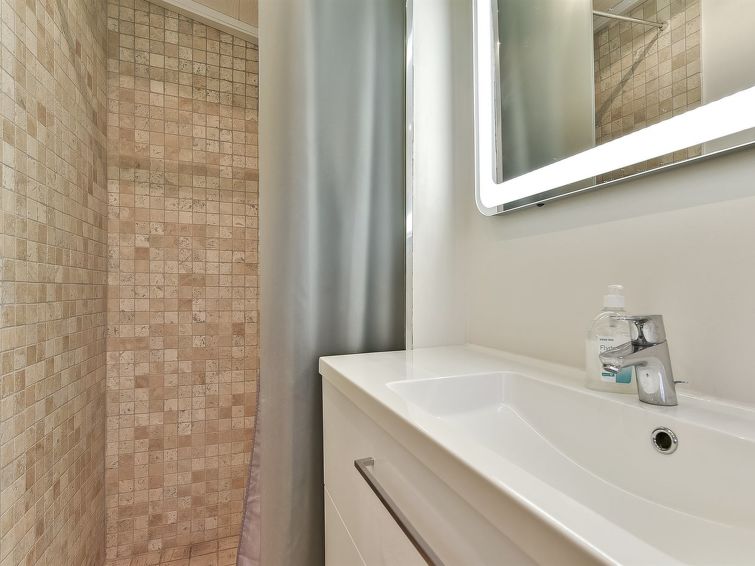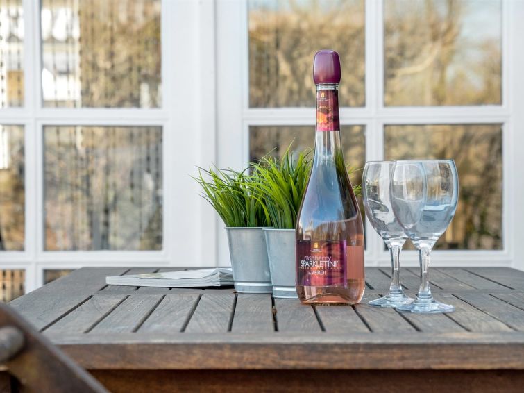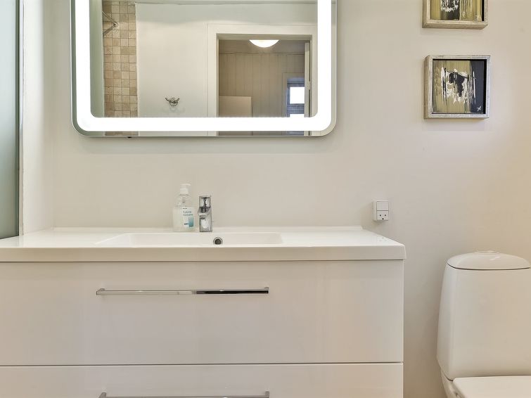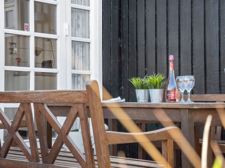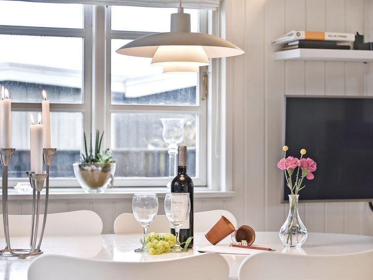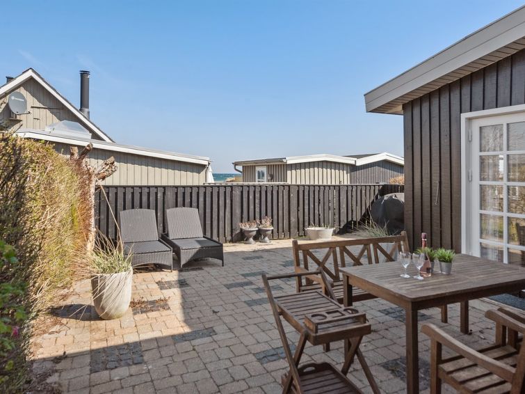 Enmannsbolig, bygget i 2002. 20 m fra sjøen. Fellesbruk: hage. Privat: tomt 150 m2, velholdt hage (inngjerdet). Terrasse (30 m2). I huset: vaskemaskin, tørketrommel. Daglivarehandel 5 km. Golfbane 10 km. Eieren godtar ikke noen ungdomsgrupper.