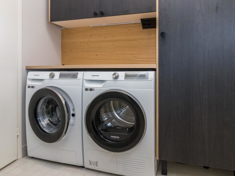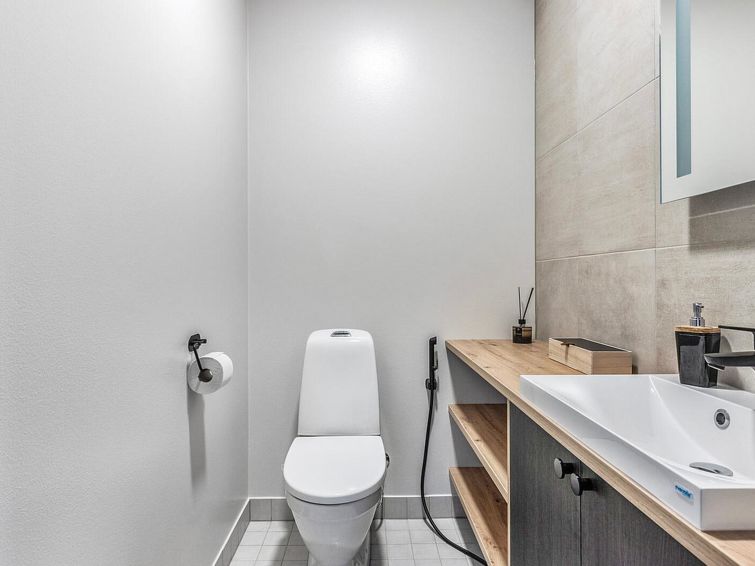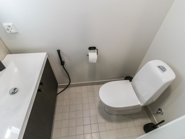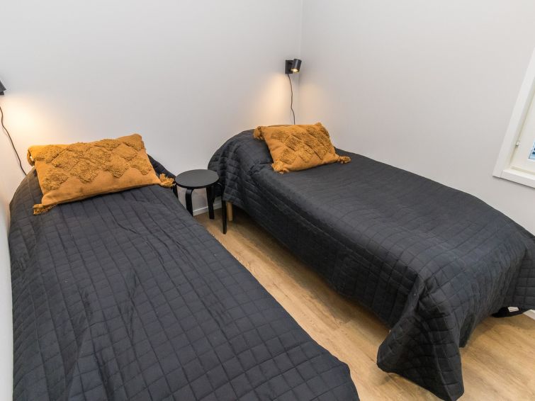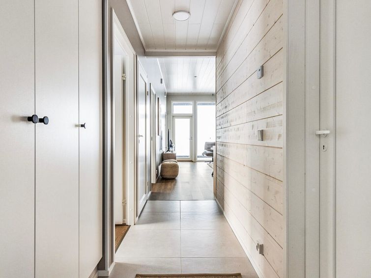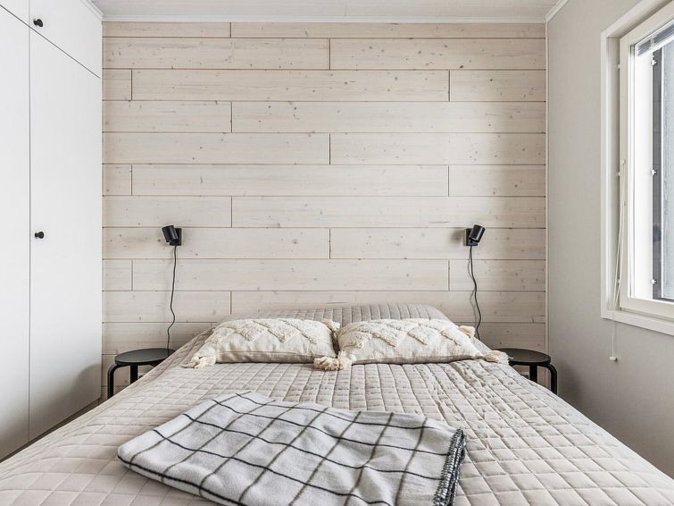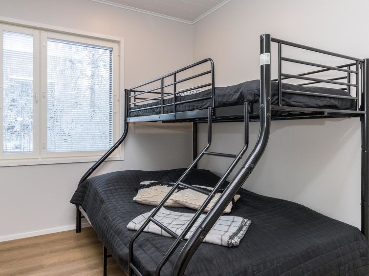 The wooden villa was completed in 2024, spacious kitchen, bedroom with double bed (160 cm), bedroom with 2 beds, bedroom with bunk bed 2+1 beds (lower bed 140 cm and upper bed 80 cm wide). Utility room, washroom (2 showers), sauna (electric heater), hallway, 2 separate toilets.