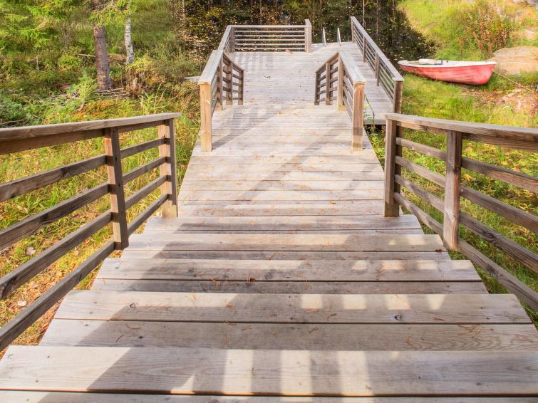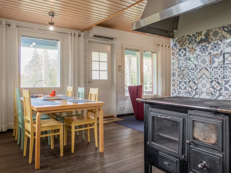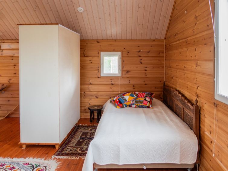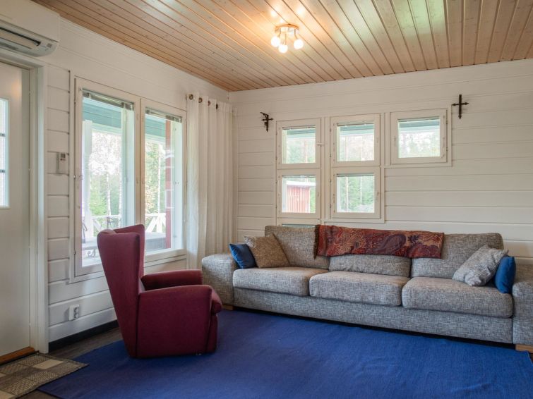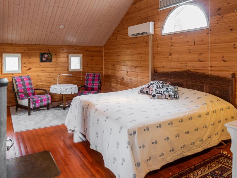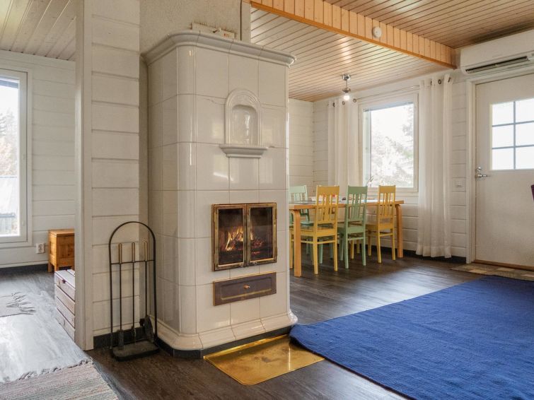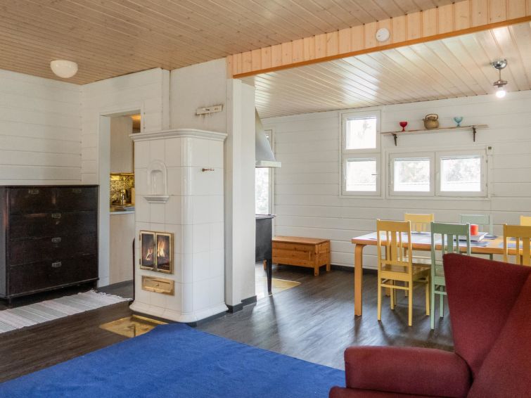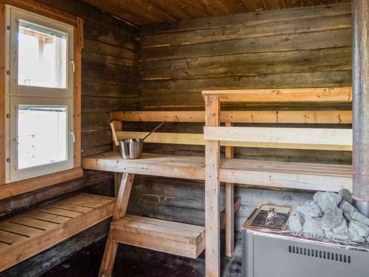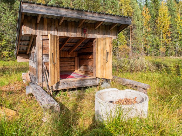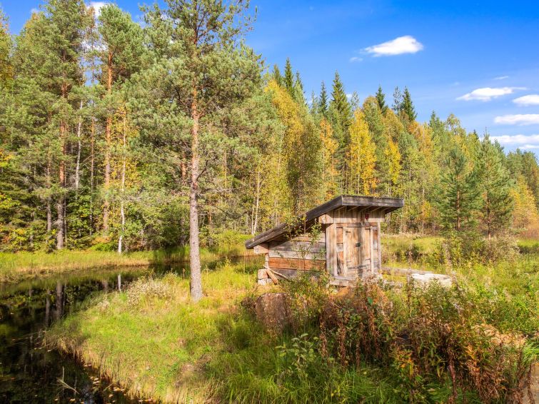 Wood-heated sauna (hot water from the heater) + dressing room. Access to the stream from the sauna is via stairs, and at the end of the stairs is a platform / terrace and a ladder. The courtyard sauna is available all year round. Note the stream is not suitable for swimming (natural mud bottom). On the beach there is a campfire place and a porch with a door. A rowing boat is available to get to Sapsojärvi (distance approx. 400 m), if you are boating, please bring your own life jackets. At the end of the stream, at the head of the promontory on the Sapsojärvi side, there is a good sandy swimming spot available (with another cabin), there are old buildings on the beach that are not used by tenants, but you can otherwise use the beach freely. The cottage is at your disposal from 16:00 on the day of arrival until 12:00 on the day of departure, also for weekend bookings.