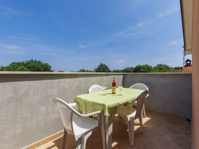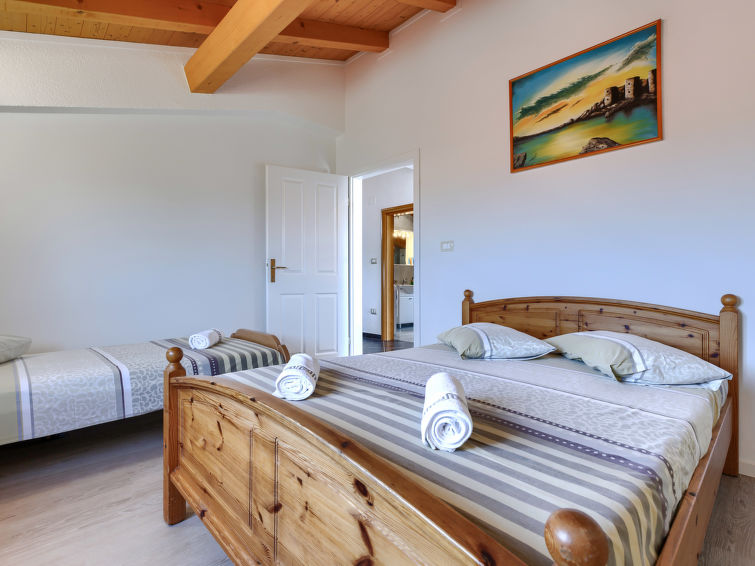 Plovanija 4 km fra Buje: Fin tomannsbolig "Villa Anamaria", med 2 etasjer. 12 km fra sentrum av Umag, i en roligt, solrikt posisjon, 4 km fra sjøen. Privat: tomt 780 m2 (inngjerdet), vakker hage med plen og planter, svømmebasseng kantete (8 x 5 m, dybde 150 cm, Sesongåpent: 01.Mai. - 15.Sep.) med innebygde trapper. Grill, lekeplass (huske). I huset: internetilkobbling, vaskemaskin. Parkering ved hbrukt på tomten. Butikk, restaurant 500 m, strand ved klipper 5 km. Golfbane 4 km, tennis 4 km. Grupper av tenåringer er ikke tillatt.
