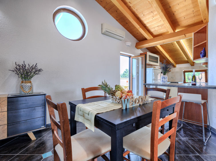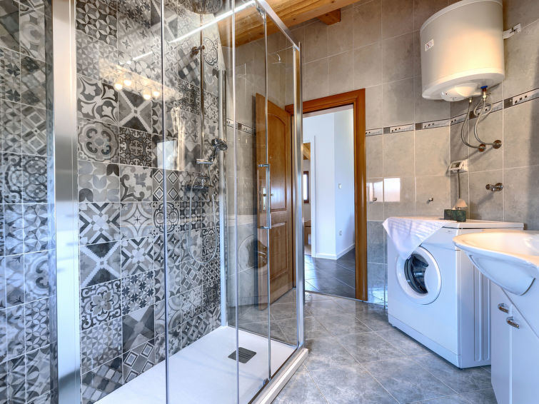 6 rom hus 160 m2 på 2 etasjer. Inngang med, air-conditioning. Stue/spisestue 30 m2 med, satelit-TV (flatskjerms TV). Utgang til terrassen. 1 rom med, 1 dobbeltseng (160 cm, lengde 200 cm). Utgang til hagen, til terrassen. 1 rom med 2 senger (80 cm lengde 200 cm). Utgang til terrassen. Åpent kjøkken (4 kokeplater, stekeovn, oppvaskmaskin, mikrobølgeovn, frys). Bad/bidé/WC. Varmluftsoppvarming. øverste etasje: (utendørs trapp) inngang med, air-conditioning. Stue/spisestue med, 1 dobbel sovesoffa og satelit-TV (flatskjerms TV). Utgang til terrassen. 1 rom med, 1 dobbeltseng (160 cm, lengde 200 cm). 1 rom med 2 senger (80 cm lengde 200 cm). Utgang til terrassen. Bad/bidé/WC. Terrasse 35 m2, dekt, terrasse 30 m2, med tak. Terrassemøbler, liggestoler. Utsikt av svømmebassenget og hagen. Fasiliteter: barneseng. Internett (trådløs LAN [WLAN], gratis). Max kjæledyr / hund tillatt 1 kjæledyr / hund tillatt. Terrasse 20 m2, terrasse 15 m2, terrasse 10 m2.