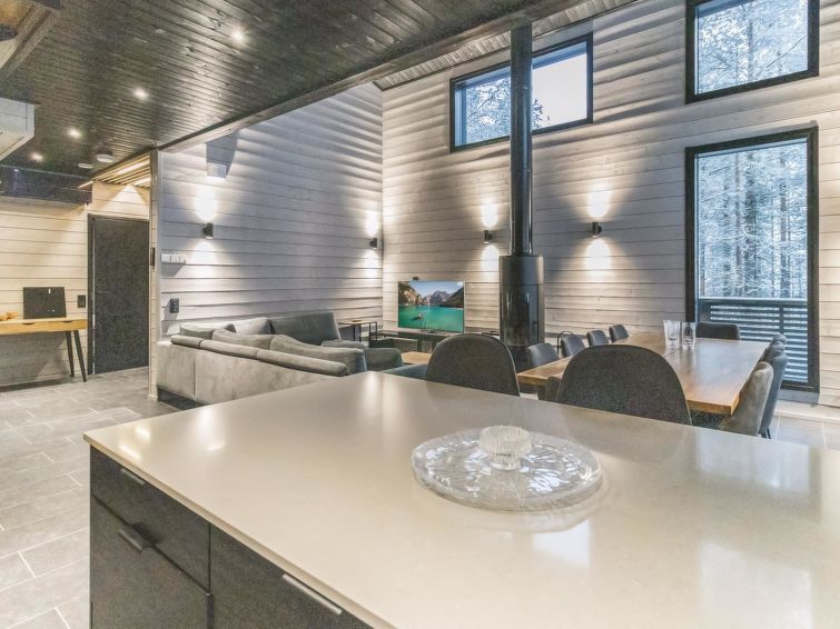 Villa Arcus B is located right next to the bottom of the Sininen ski slope, so you can go directly to the slope and use the Pyhä Express chair lift to the top of fell Kultakero. Restaurant Pyhän Uula is within walking distance. The nearest ski trail is located 300 meters away, there is a total of about 150 km of ski trails in Pyhä-Luosto area. The Luosto ski resort is about 20 km away. There is nice Amethyst Spa in connection with Lapland Hotel Luostotunturi.