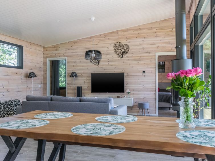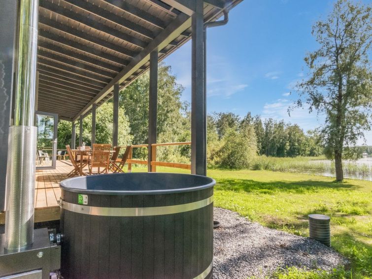 The hot tub is available for rent from 1 May to 30 October. The hot tub rent 1-3 days €150, 4-7 days €220. The hot tub must be reserved for the entire vacation. A flat grassy plot where the sun can shine during the day and evening. The location of the cabin is peaceful, there is very little passing traffic. A food processor in the kitchen.