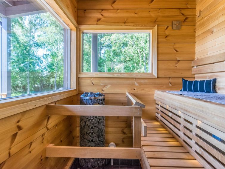 Villa Aura is a new cozy cabin on a sunny plot by lake Ilmoilanselkä. From the balcony on the terrace, you can watch the passing boat traffic. The beautiful lake scenery can also be seen from the large windows. The cabin's three separate bedrooms and new, high-quality Yankee beds enable a peaceful place to sleep during your vacation. The house is heated by an air-to-water heat pump, which can also be used to cool the cabin. The interior space is comfortably cool even in the summer heat.