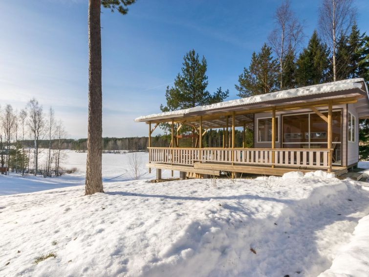 55 km northwest of Heinola, lake Suojärvi 800 m away (length 3 km, width 0.8 km), hard and deep beach shared with a few neighbors, own boat.