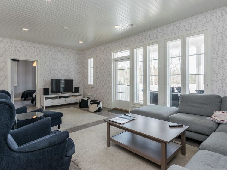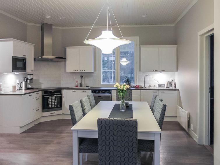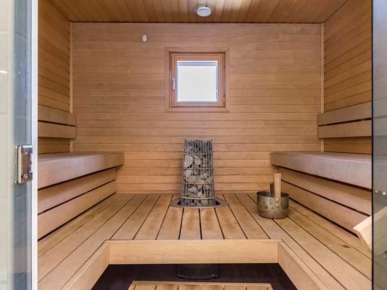 Wooden house 2014, kitchen-living room, toilet, 3 bedrooms with 2 beds in each, sauna (electric), shower room (2 showers and toilet), dressing room/utility room, lounge, terrace.
