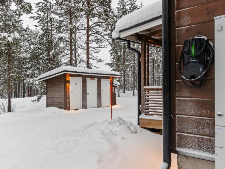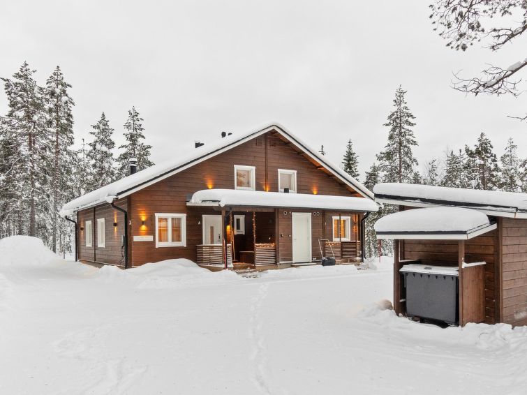 Spacious and bright apartment in semi-detached house. The house is built in the summer of 2022, and it is located in a quiet area in Levijärvi. The apartment has everything you need for a successful vacation. Snowmobile trails and ski slopes are just a stone's throw away, and the ski bus, that runs 500 m away, takes you to the ski slopes and the comprehensive services of Levi tourists in ten minutes. In the snow-free season, versatile outdoor terrains are very close by, and the wonderful landscapes of lake Levijärvi and small swimming beach are only a few hundred meters away.