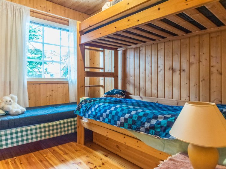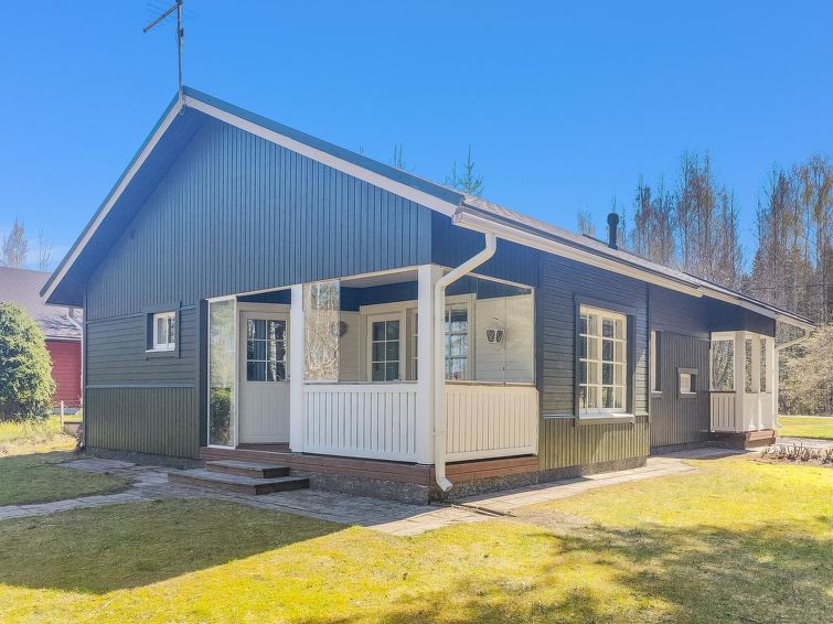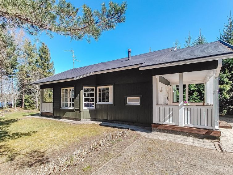 110 km from Lahti, Lake Suontee 50 m, a shallow, clear watered lake with a sandy beach and accumulated humus. Wooden cabin, built in 1997. The cabin includes a living room with a sofa set and a heat-storing fireplace, a kitchen. Bedroom 1: a double bed, Bedroom 2: a bunk bed where the lower bed can be extended, and an additional separate bed. WC, a sauna with an electrically heated sauna stove, a shower room, and a small glazed terrace. In the yard, there's a grill hut with a home kitchen and a campfire site. A separate sauna by the shore (for shared use), water must be carried from the lake. Own rowing boat.