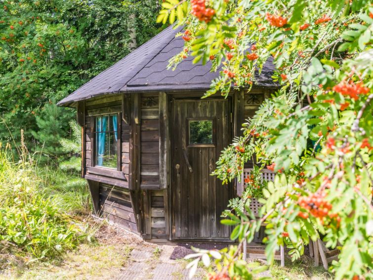 A holiday home on a spacious plot, furnished with the amenities of a detached house. There is a grill hut with a cooking possibility in the yard. A sauna by the shore is for shared use with the neighbor.