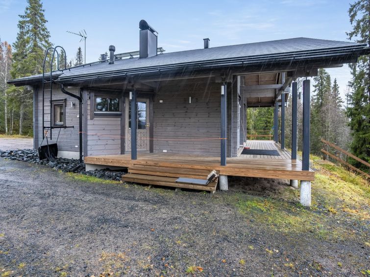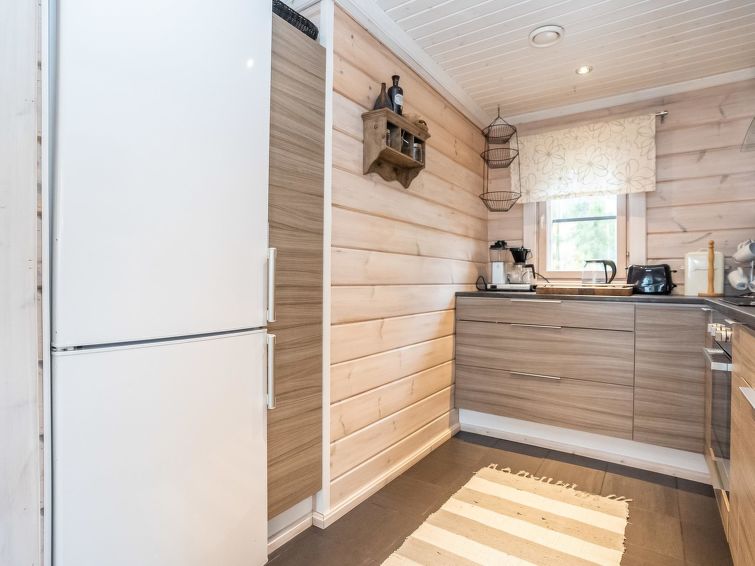26km north of Kuusamo, Ruka 12 km, Lake Kuontijärvi 30 m, sanded shore, but otherwise soft and muddy, rowing boat. Log cottage, built in 2014, bedroom: double bed, combined kitchen/living room: convertible sofa for two, loft (30 m²): 3 beds, electric sauna. Gasgrill and grill with wood, gasgrill is use only for period 1.6.-30.9.