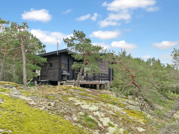 This cabin is situated in a peaceful spot on a rocky plot in the Kasnäs area. Kasnäs harbor, spa, and beach are 1.5 km away. The cabin features a spacious terrace, providing a perfect setting to spend time on a summer day. The terrace is equipped with ample garden furniture and a gas grill.