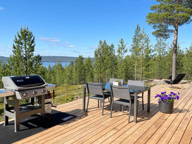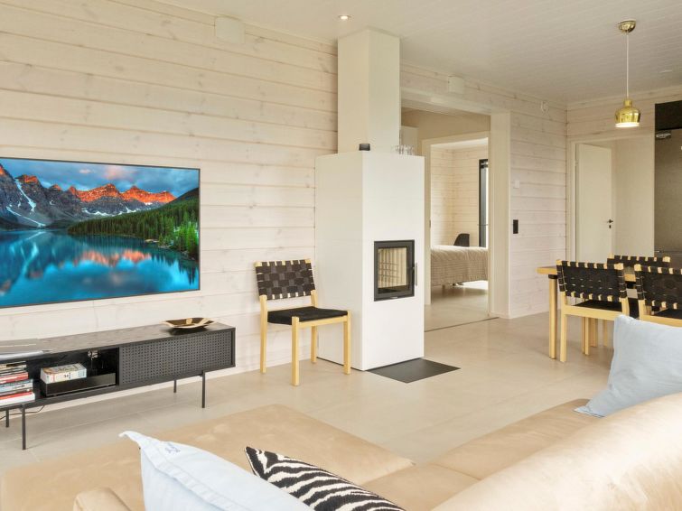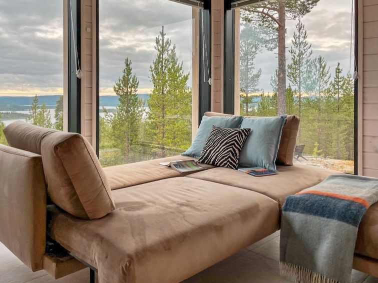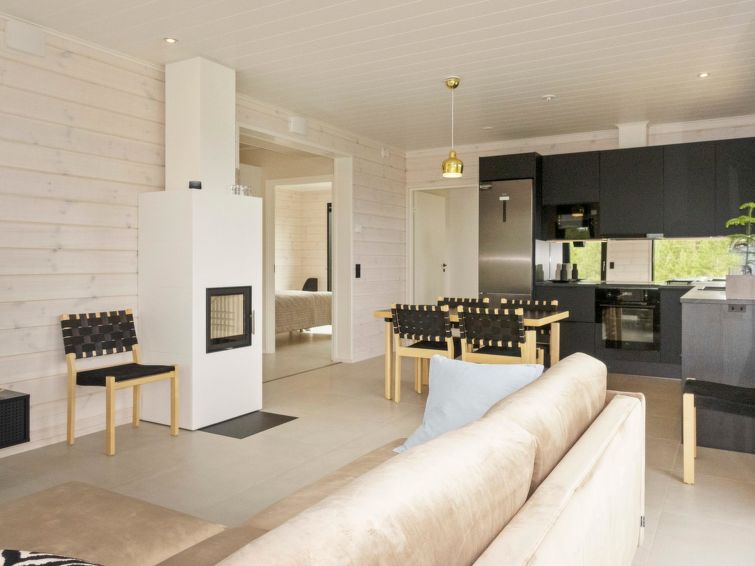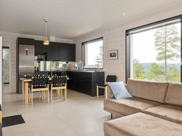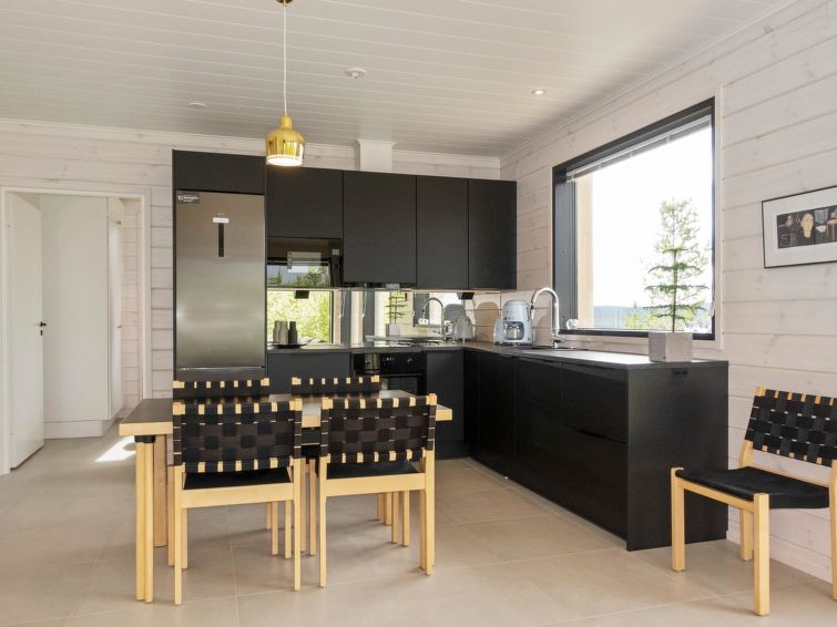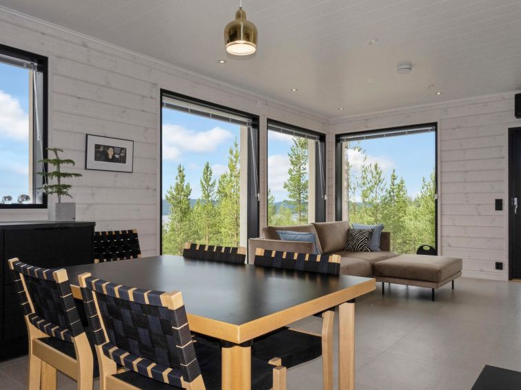 High-quality holiday villa, built in 2022, at a peaceful vantage point in Inari. Great views of lake Rahajärvi from the large windows. Suits perfectly for both nature holidays and remote work.