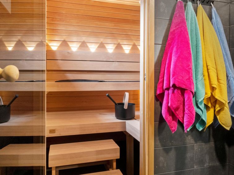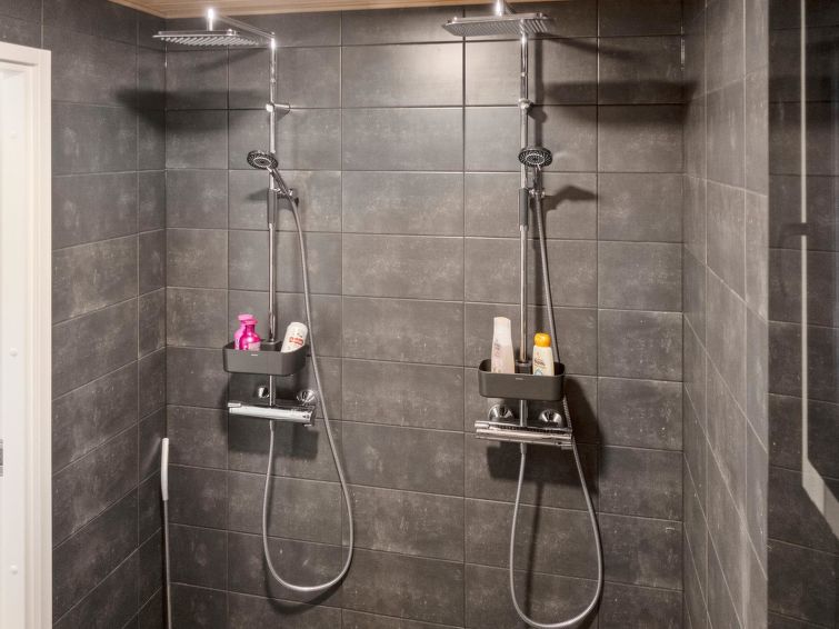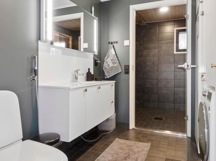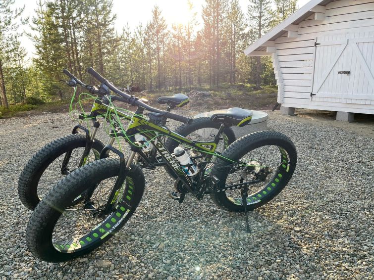 A camera recording in the yard area, which records the drive to the plot and the parking area of the yard. The camera is not on when there are guests in the destination. The fireplace in the cabin is not in use. The air source heat pump is also suitable for cooling. Electric standing desk in one bedroom. Washing machine with a drying functionality. In the washroom, in addition to the normal shower heads, there are also so-called rain showers. Two fatbikes available.