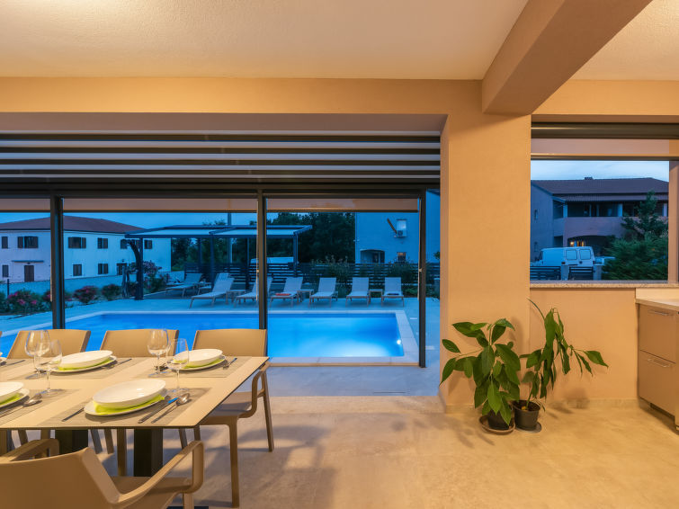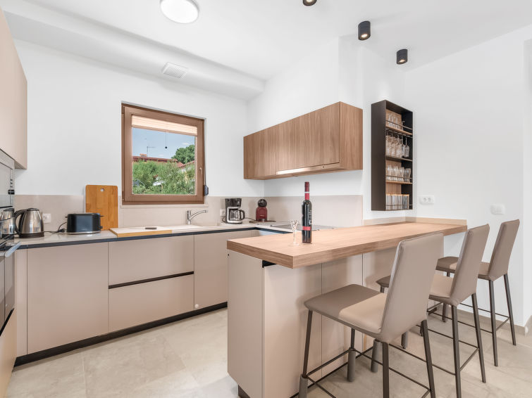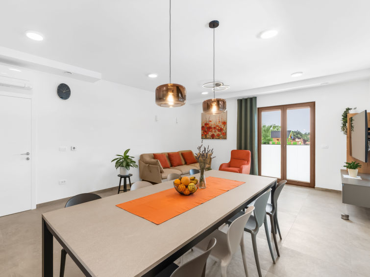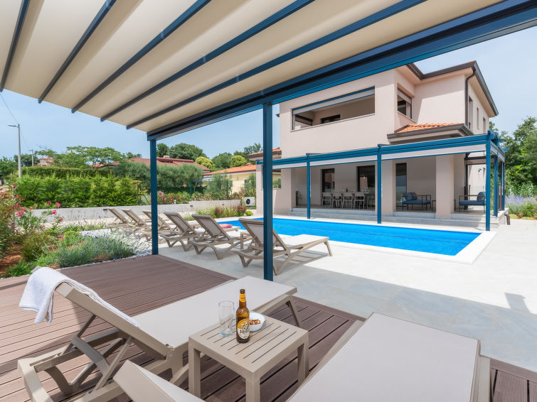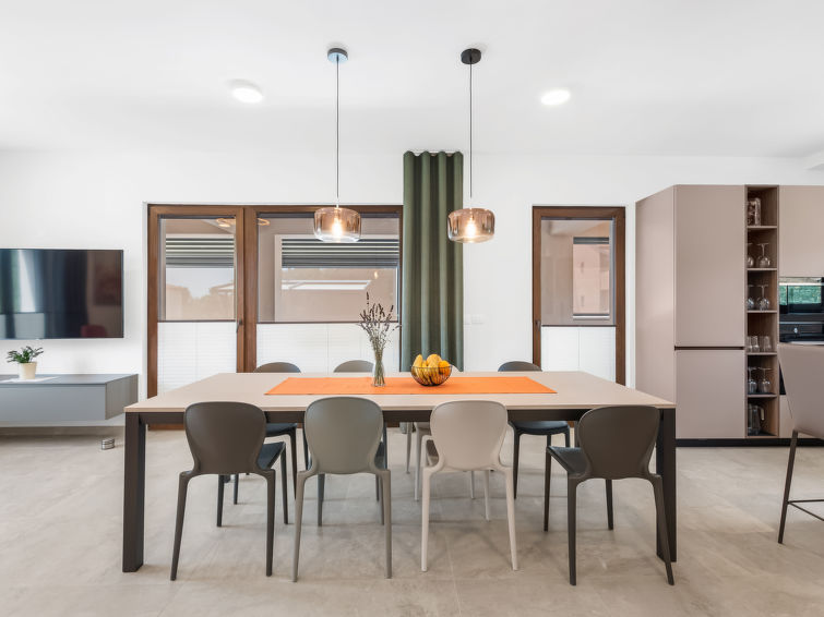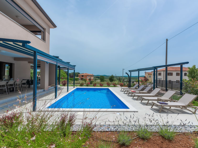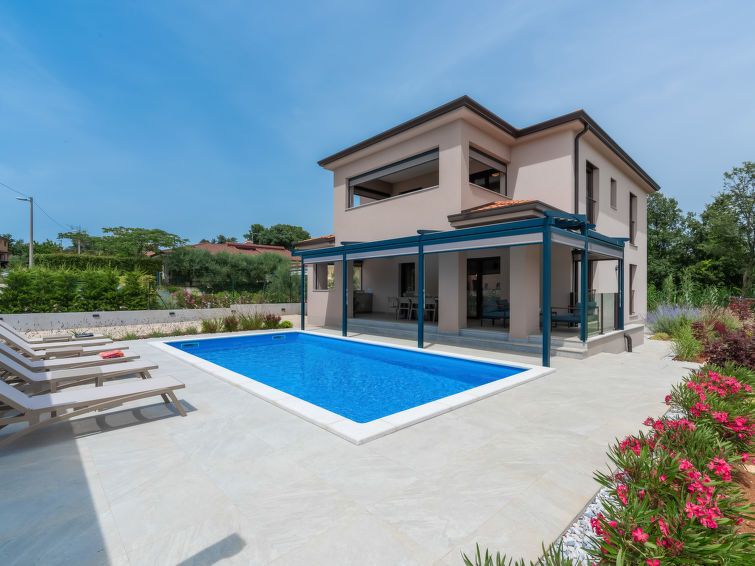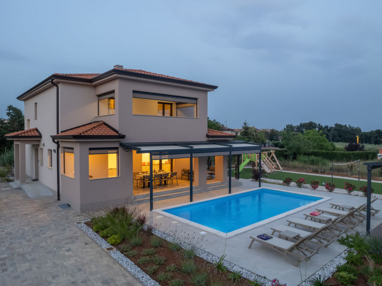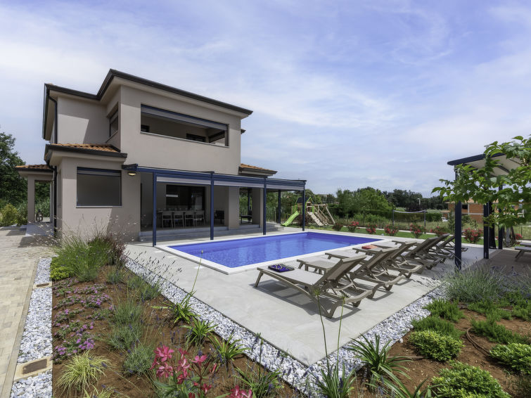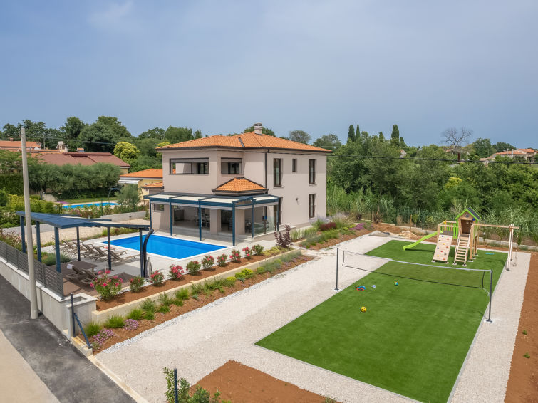 Meget fin enmannsbolig "Villa Karina", med 2 etasjer, bygget i 2022. I det lille tettstedet Kadumi 5.5 km fra sentrum av Poreč, i en solrikt posisjon, 6 km fra sjøen. Privat: tomt 1'100 m2 (inngjerdet), svømmebasseng kantete, oppvarmt (8 x 4 m, dybde 150 cm, Sesongåpent: 01.Mai. - 31.Okt.) med innebygde trapper. Utendørs dusj, volleyball, badminton, grill, lekeplass (rutsjebane, huske), Underholdning av bassenget av eieren/gartneren. I huset: internetilkobbling, vaskemaskin. Parkering (for 4 biler) ved hbrukt på tomten. Ladestasjon for elbil. Butikk 3 km, supermarked 3 km, restaurant 500 m, småstenstrand 6 km, strand ved klipper 6 km. Turstier fra hbrukt 100 m, sykkelvei 150 m. Attraksjoner i nærheten: Aquapark 5 km. Vennligst merk: velegnet for barnefamilier. Eieren godtar ikke noen ungdomsgrupper. Svømmebasseng oppvarmt (ekstra). Utendørs kjøkken (kjøleskap).