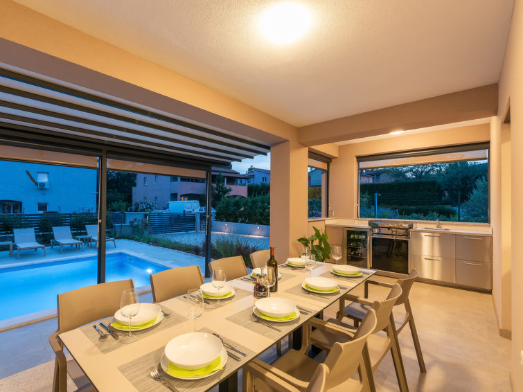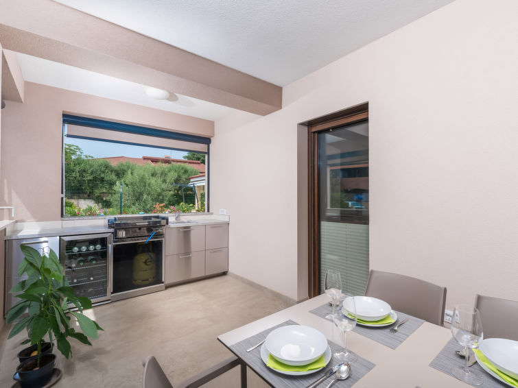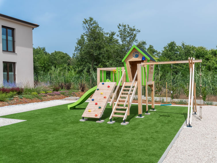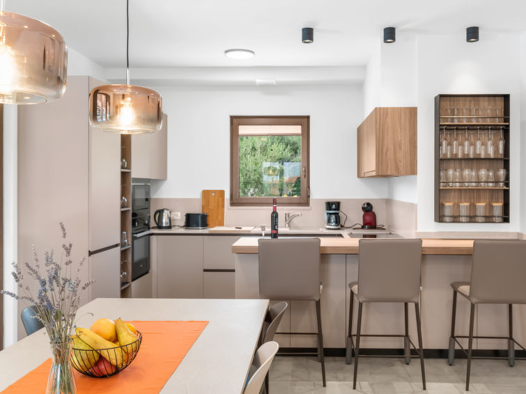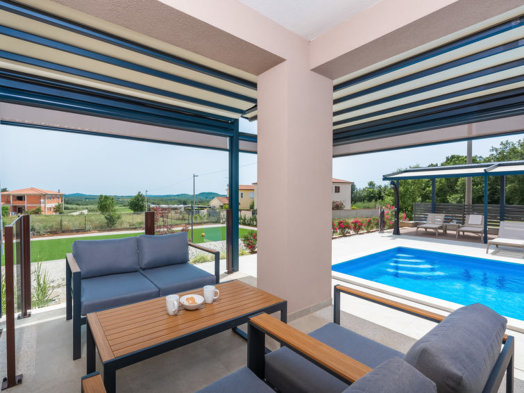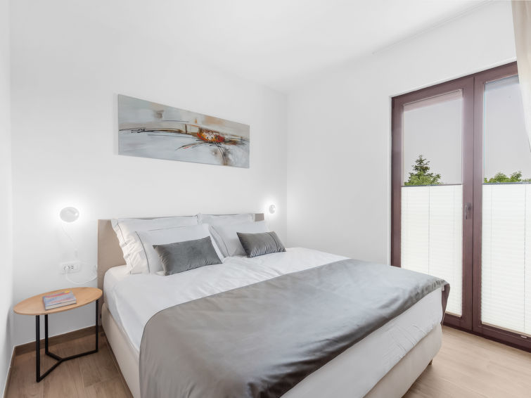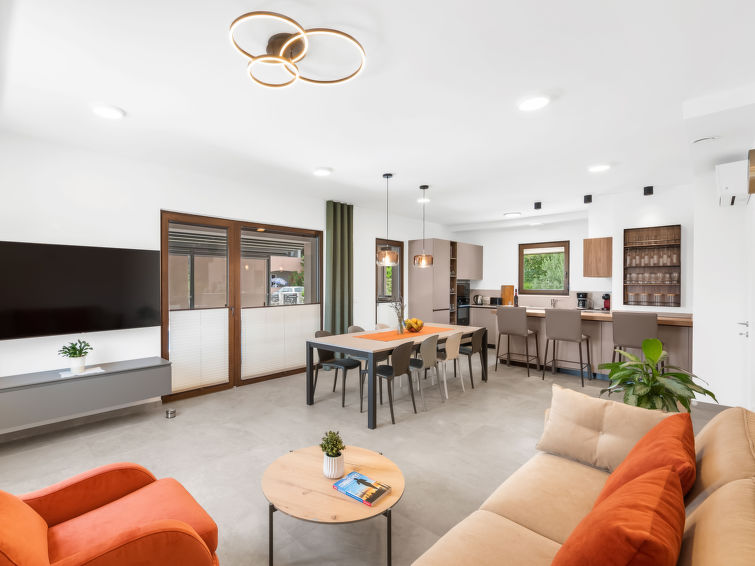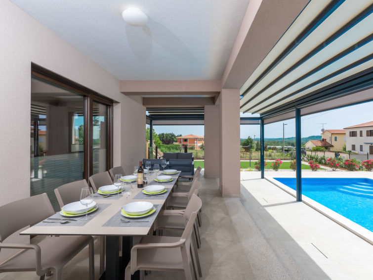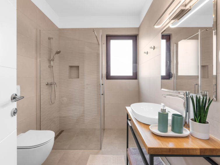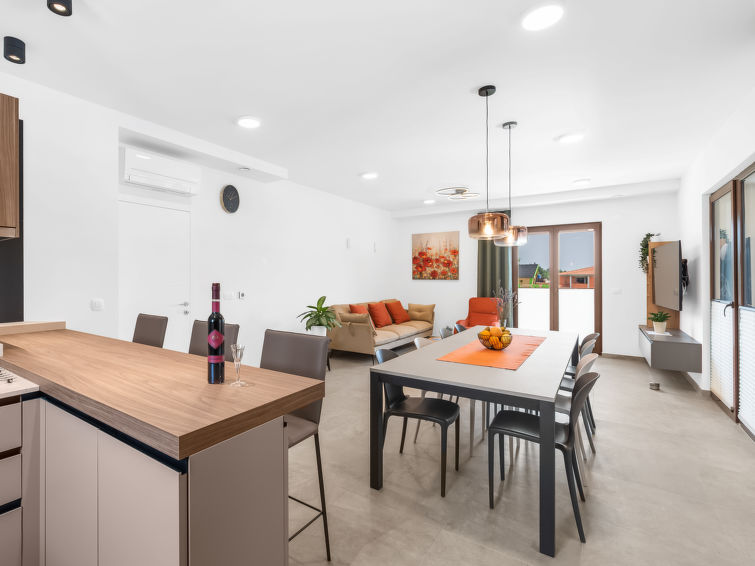 Meget fin enmannsbolig "Villa Karina", med 2 etasjer, bygget i 2022. I det lille tettstedet Kadumi 5.5 km fra sentrum av Poreč, i en solrikt posisjon, 6 km fra sjøen. Privat: tomt 1'100 m2 (inngjerdet), svømmebasseng kantete, oppvarmt (8 x 4 m, dybde 150 cm, Sesongåpent: 01.Mai. - 31.Okt.) med innebygde trapper. Utendørs dusj, volleyball, badminton, grill, lekeplass (rutsjebane, huske), Underholdning av bassenget av eieren/gartneren. I huset: internetilkobbling, vaskemaskin. Parkering (for 4 biler) ved hbrukt på tomten. Ladestasjon for elbil. Butikk 3 km, supermarked 3 km, restaurant 500 m, småstenstrand 6 km, strand ved klipper 6 km. Turstier fra hbrukt 100 m, sykkelvei 150 m. Attraksjoner i nærheten: Aquapark 5 km. Vennligst merk: velegnet for barnefamilier. Eieren godtar ikke noen ungdomsgrupper. Svømmebasseng oppvarmt (ekstra). Utendørs kjøkken (kjøleskap).
