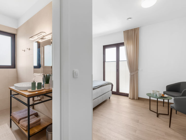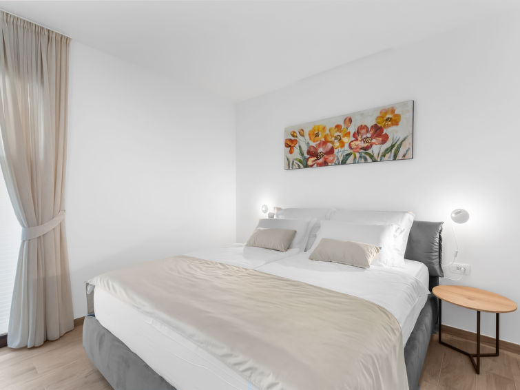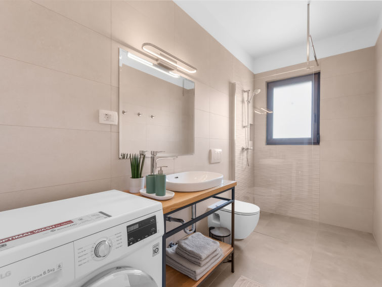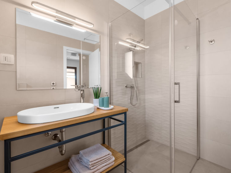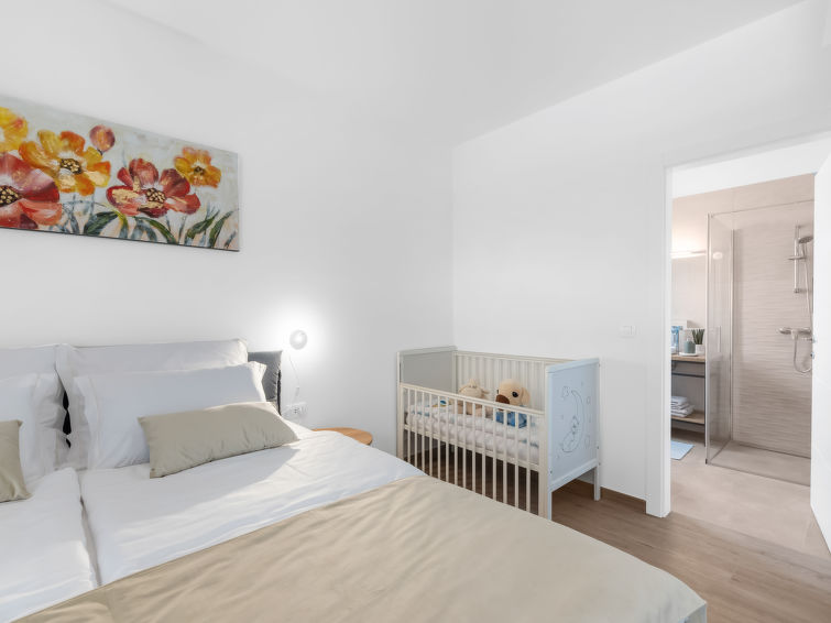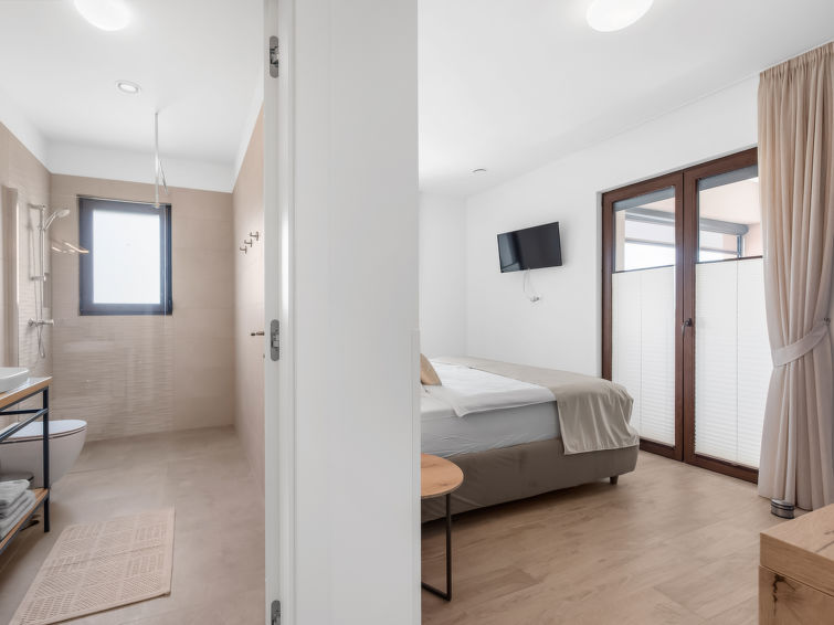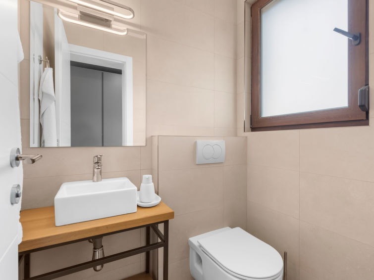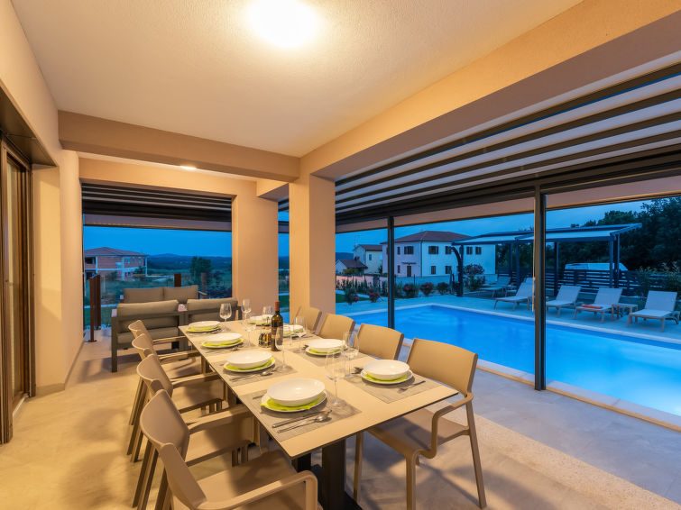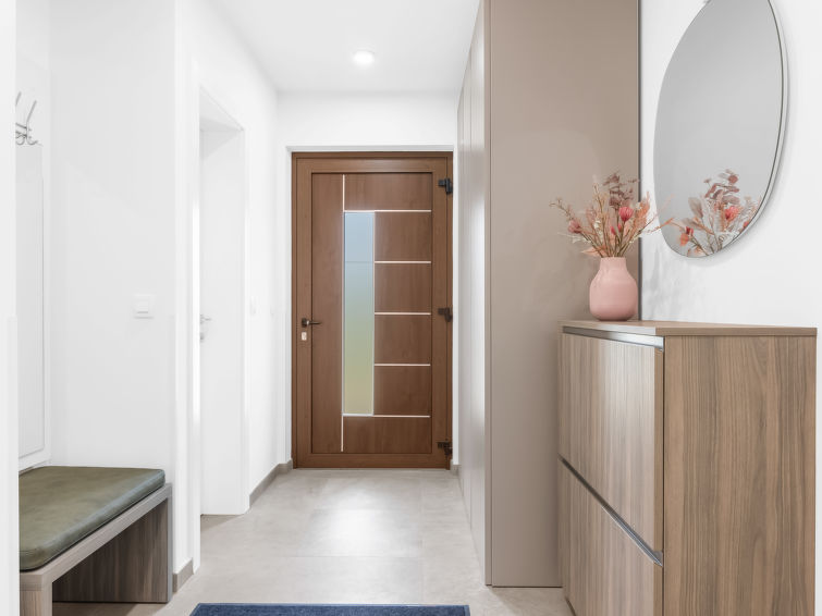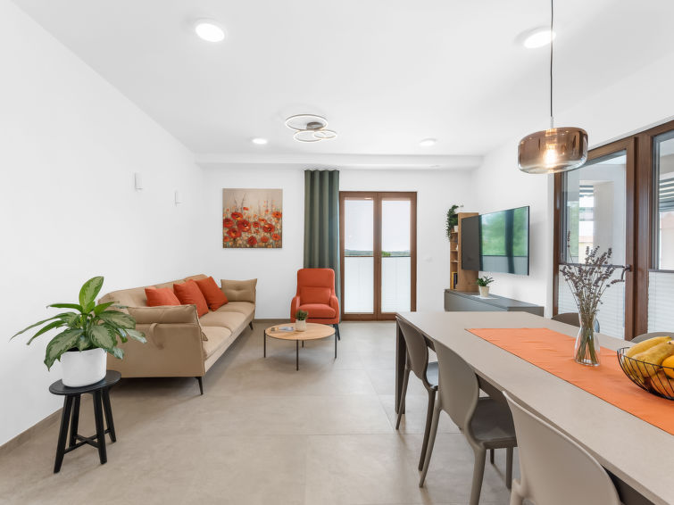 Meget fin enmannsbolig "Villa Karina", med 2 etasjer, bygget i 2022. I det lille tettstedet Kadumi 5.5 km fra sentrum av Poreč, i en solrikt posisjon, 6 km fra sjøen. Privat: tomt 1'100 m2 (inngjerdet), svømmebasseng kantete, oppvarmt (8 x 4 m, dybde 150 cm, Sesongåpent: 01.Mai. - 31.Okt.) med innebygde trapper. Utendørs dusj, volleyball, badminton, grill, lekeplass (rutsjebane, huske), Underholdning av bassenget av eieren/gartneren. I huset: internetilkobbling, vaskemaskin. Parkering (for 4 biler) ved hbrukt på tomten. Ladestasjon for elbil. Butikk 3 km, supermarked 3 km, restaurant 500 m, småstenstrand 6 km, strand ved klipper 6 km. Turstier fra hbrukt 100 m, sykkelvei 150 m. Attraksjoner i nærheten: Aquapark 5 km. Vennligst merk: velegnet for barnefamilier. Eieren godtar ikke noen ungdomsgrupper. Svømmebasseng oppvarmt (ekstra). Utendørs kjøkken (kjøleskap).
