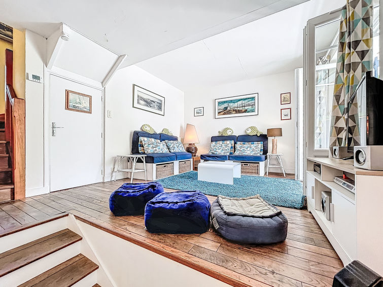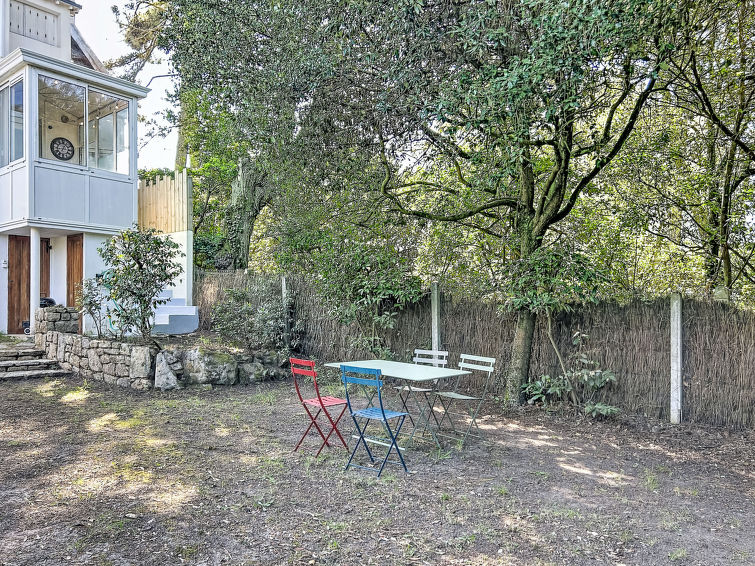 Enmannsbolig "Villa Kermario", med 2 etasjer, bygget i 1930. I området 800 m fra sentrum av Carnac Plage, i et boligområde, utmerkt område: midt i sentrum, men roligt, 100 m fra sjøen, 100 m fra stranden. Privat: hage m2 300 ha (inngjerdet). Hagemøbler, parkering ved hbrukt. Supermarked 450 m, restaurant 1 km, bar 600 m, sandstrand "Grande Plage de Carnac", termalbad "Thalassothérpaie Thalazur" 1.3 km. Golfbane(18 hull) 15 km, seileskole 1 km, tennis 600 m. Attraksjoner i nærheten: Les Alignements de Carnac 3 km, La Trinité sur Mer 4 km, La Presqu'ile de Quiberon 15 km, Vannes 35 km, lorient 55 km, Belle île en Mer, Houat, Hoedic. Turstier Le Golfe du Morbihan.