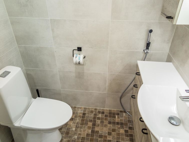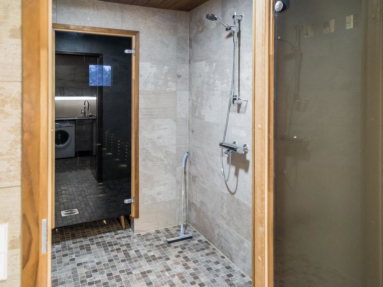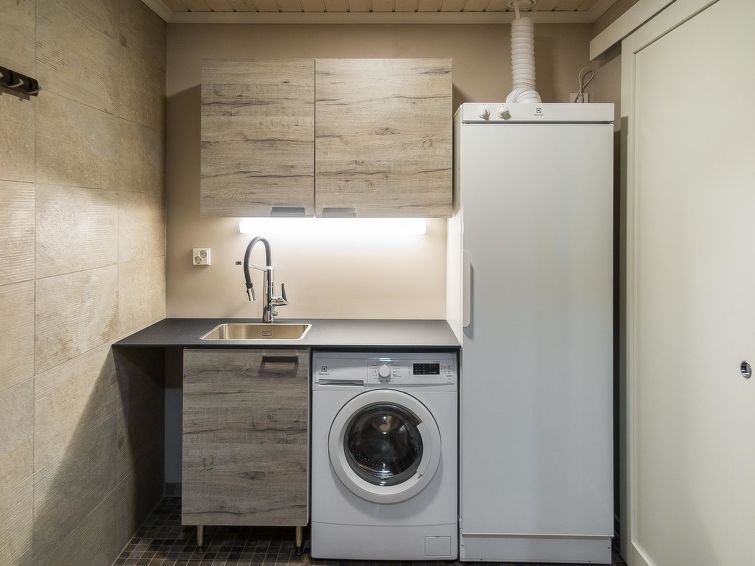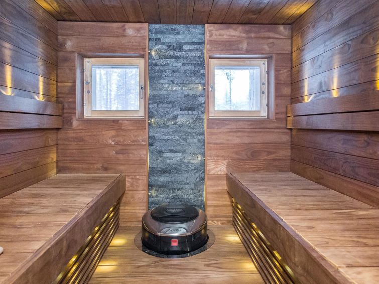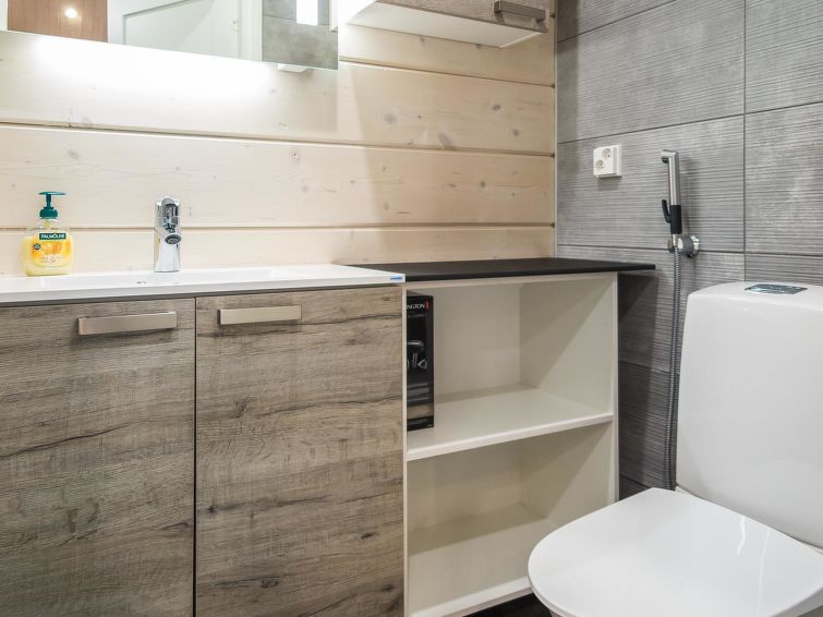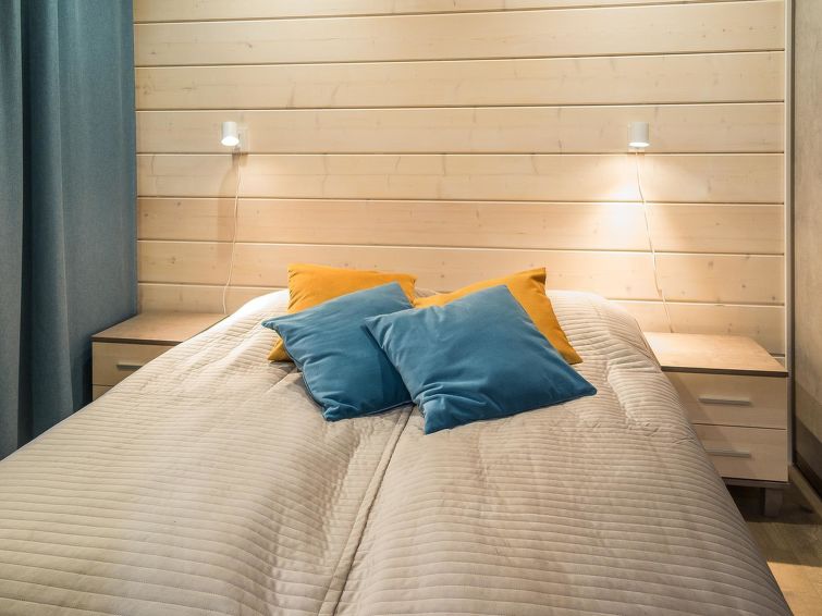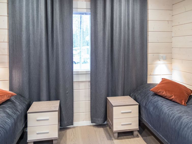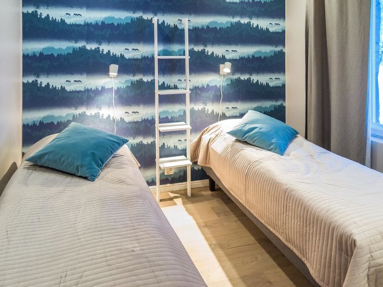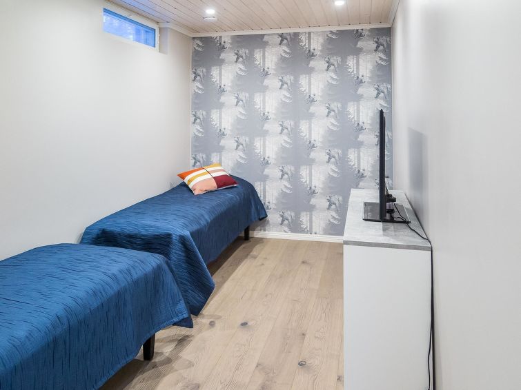 40 km to the north from Kolari, thermo log cottage, built in 2018. Upstairs: Kitchen-living room, 2 bedrooms with 2 single beds, WC. Downstairs: 2 bedrooms with 2 single beds, sauna, shower, WC, utility room. More: There is a sound bar in the living room TV which can be connected, for example to the phone, WiFi, air source heat pump in upstairs and downstairs. Ski maintenance in downstairs, entry from outside. Stylish cottage in the village of Äkäslompolo, located in calm Martinsaari area. Pets are allowed in the apartment, max. 2 pets/booking. Pet fee. Final cleaning is included in the price, bed linen for rent.