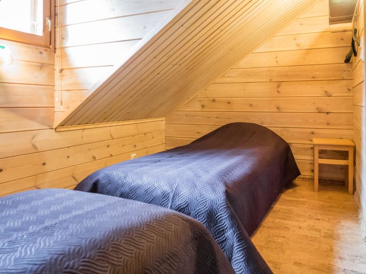 Living area 85 m², including loft (15 m²). Kitchen/livingroom with dinning table for 6-8 persons. Two bedrooms, 1st with bed for 2, 2nd with 1 bed. Sauna (electric), shower/wc. Loft with bed for 3 persons + wc. Terrace. Wifi / internet access.