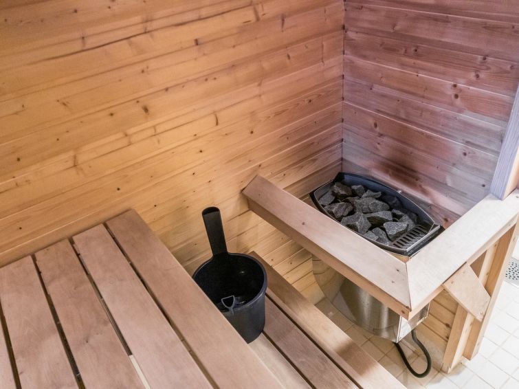 Living area 85 m², including loft (15 m²). Kitchen/livingroom with dinning table for 6-8 persons. Two bedrooms, 1st with twin bed (get separate if needed), 2nd with 120 cm bed for 1-2 persons. Sauna (electric), shower/wc. Loft with bed for 4 persons + wc. Terrace. Wifi / internet access.