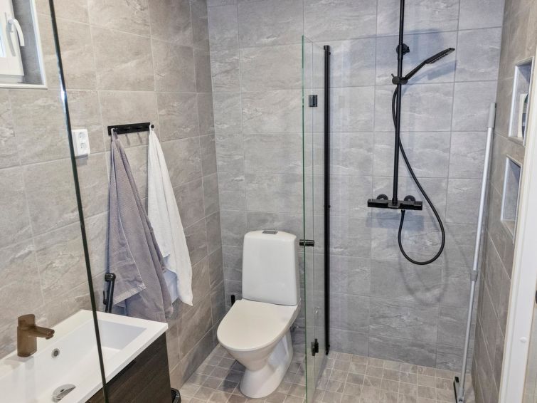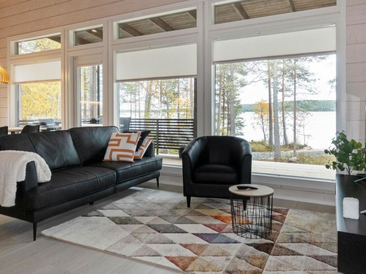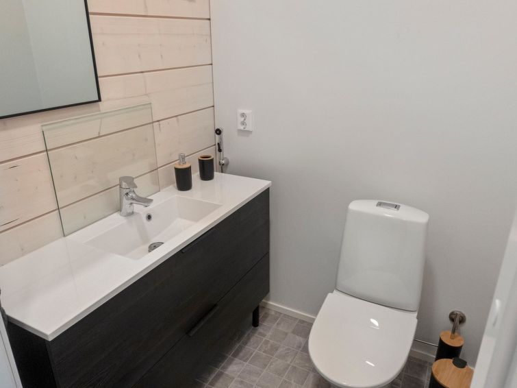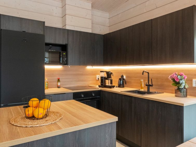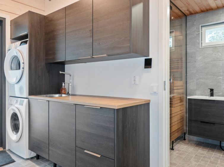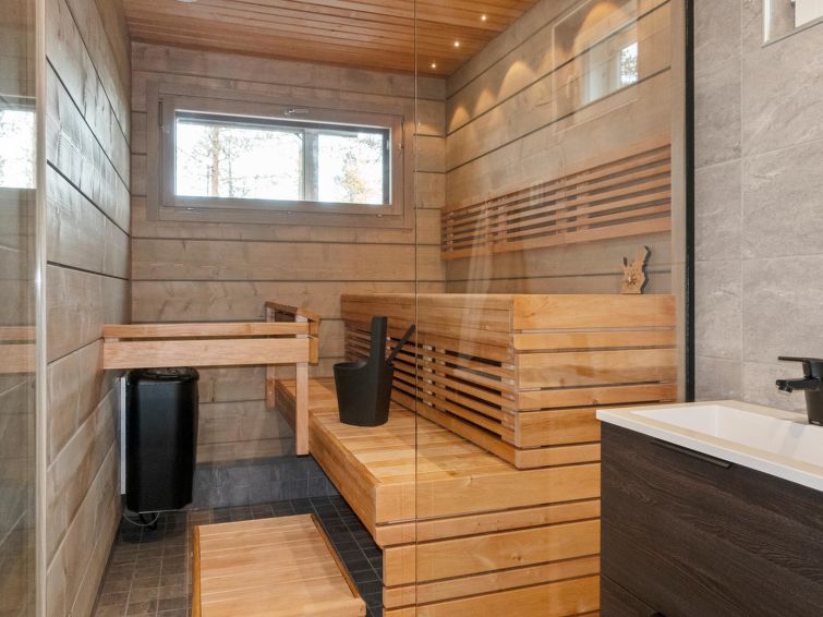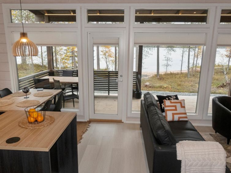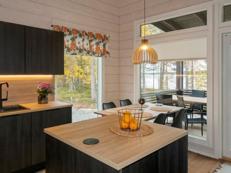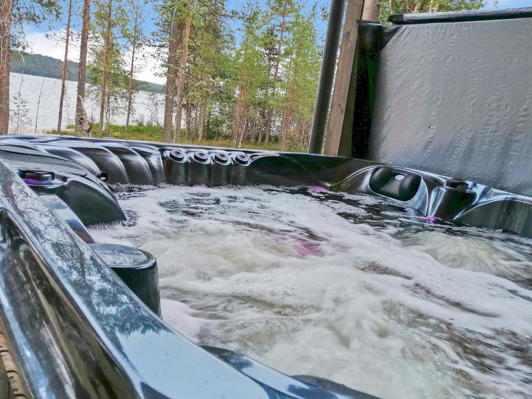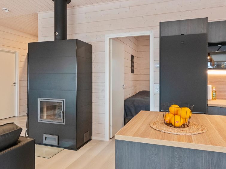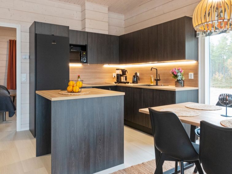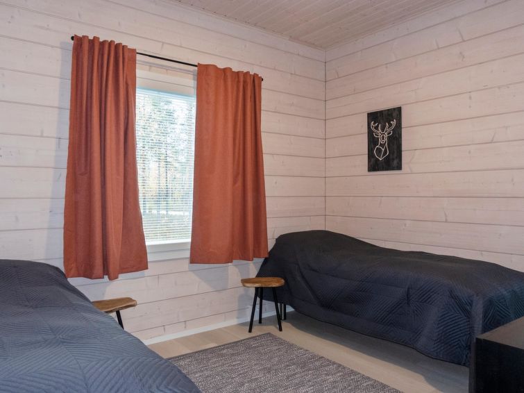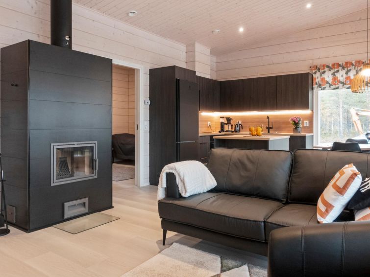 Log villa, completed in 2022. Living room/kitchen, bedroom with double bed, another bedroom with 2 single beds, sauna, washroom/WC, utility room and also a separate WC. Two cube mattresses as extra beds. Large covered terrace with an always warm hydro massage bath. The hydro massage bath can be rented for an extra fee, payment per reservation.