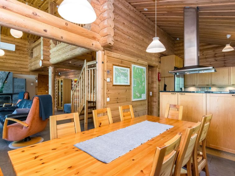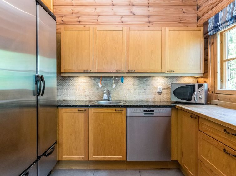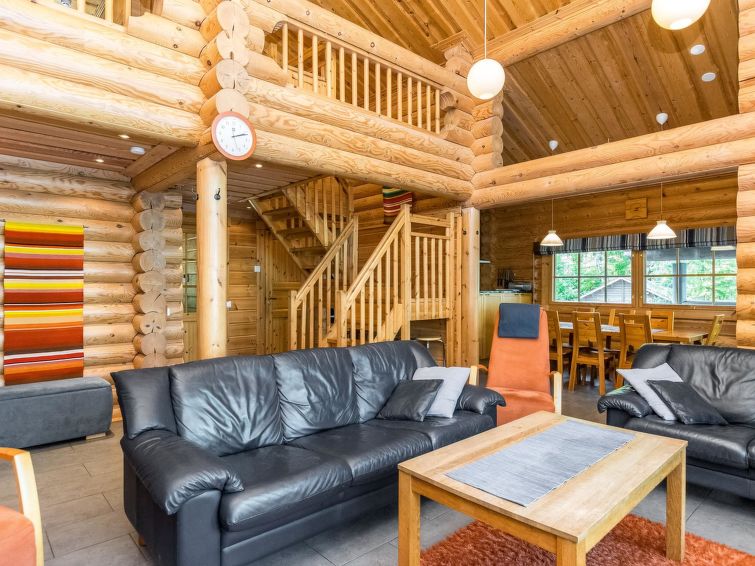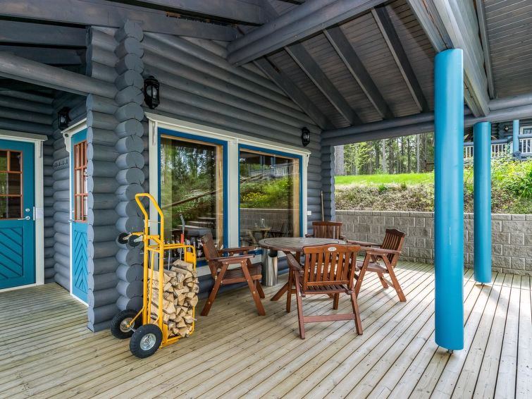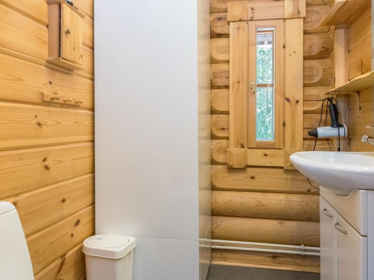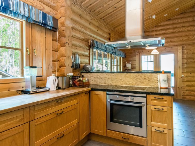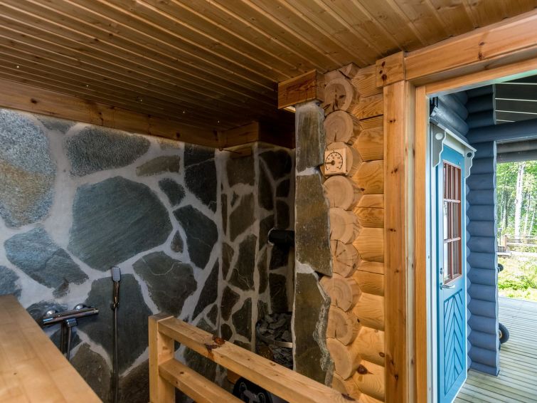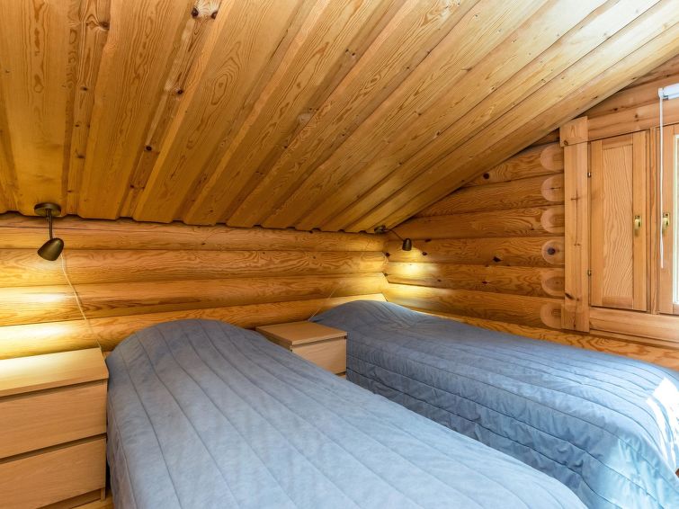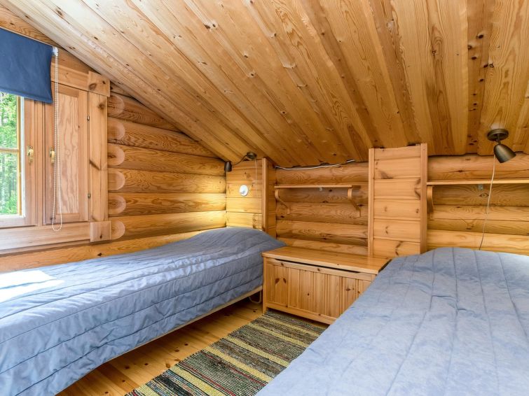 Log cottage 2005, kitchen, dining room, living room, two bedrooms, both with 2 separate beds, washroom, sauna (wood stove), utility room, separate toilet. Upstairs, two bedrooms, each with 2 separate beds. Large covered terrace, barbeque, bio toilet.