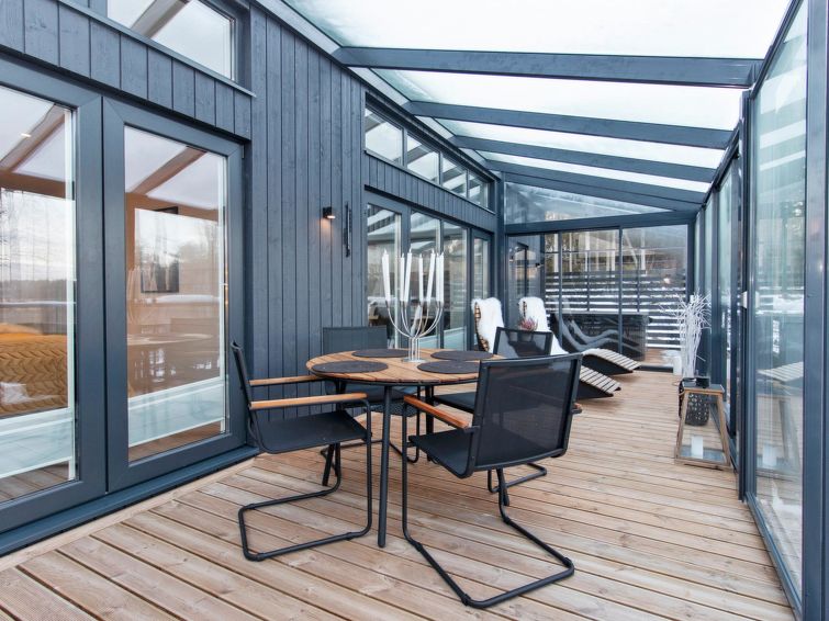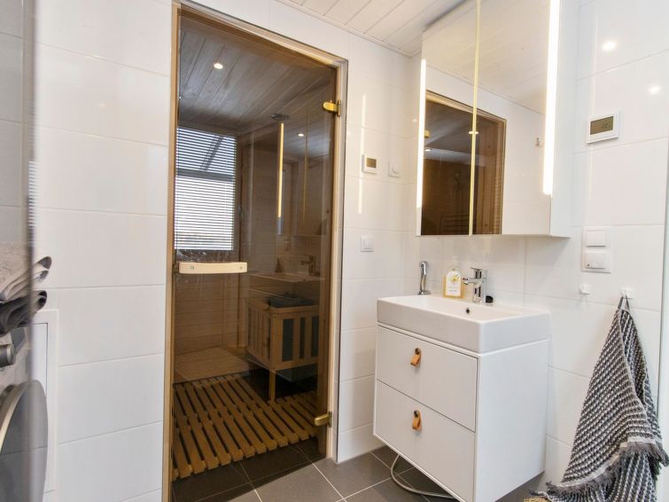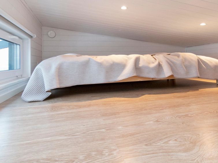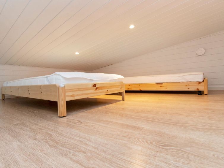 65 km south from Salo, 178 km from Helsinki, 85 km from Turku, 220 km from Tampere. Well-equipped kitchen, double bed in the bedroom and two beds in the loft above it. There are also two beds in the loft above the sauna. Steep transferable stairs leading to the loft (room height in loft is low). Air source heat pump in the living room. Fully covered terrace with gas grill and furnishing.