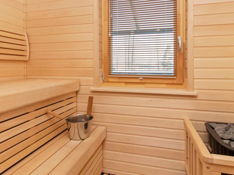 Electric sauna, washroom with shower and WC. Shared beach with boat pier. Distance to the sea beach is about 100 meters. Located near the hotel Merikruunu; rowing boats, SUP boards, bicycles and seaside sauna for rent. You can find restaurant and pub in the hotel.