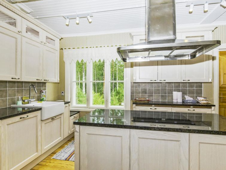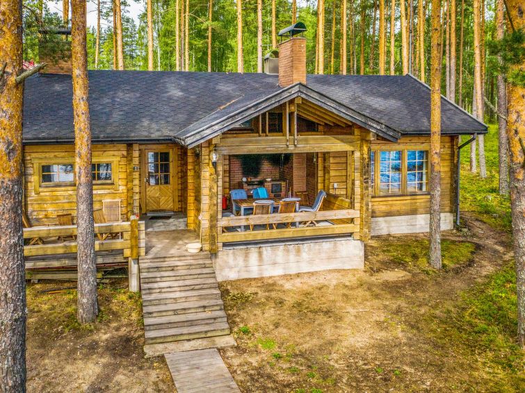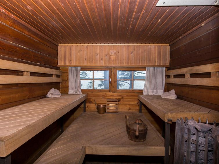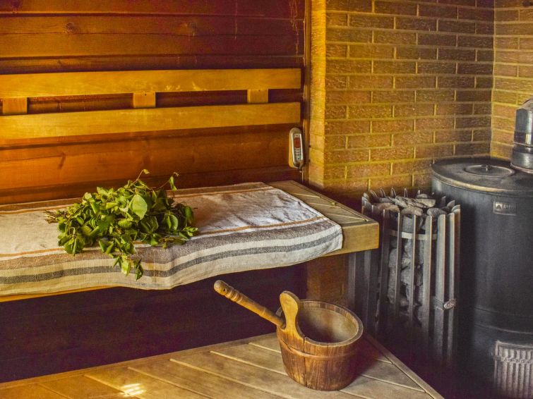 The main building does not have a sauna, but there is a separate lakeside sauna. There is a pier from sauna's terrace. Villa has appr. 200 meters wide swimming beach.