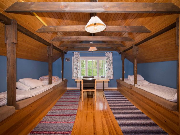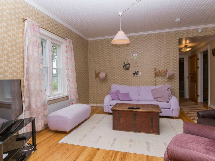 Air source heat pump, electric heating, TV, drying cabinet. Mattresses on the loft for four people. Dining table for 12 people.