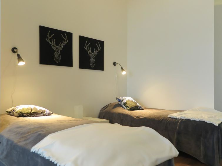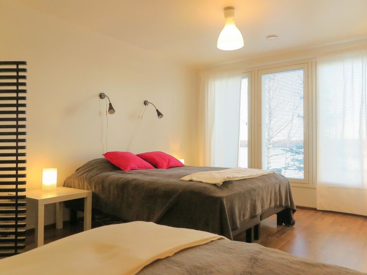 The nearest skiing track is on the river 100 m away, Ounasvaara ski tracks 7 km away. Public beach 200 m, lean and fire place 300 m, service station restaurant 1.7 km. Center shopping malls 6 km, Cultural Center Korundi 6 km, Science Center and Museum Arktikum 7 km, Sports and Recreation Center Santasport (including spa) 7 km, Arctic Circle and Santapark 14 km, Ounasvaara Ski Resort 10 km. Railway station 5 km, airport 15 km. Ranua Wildlife Park 84 km.
