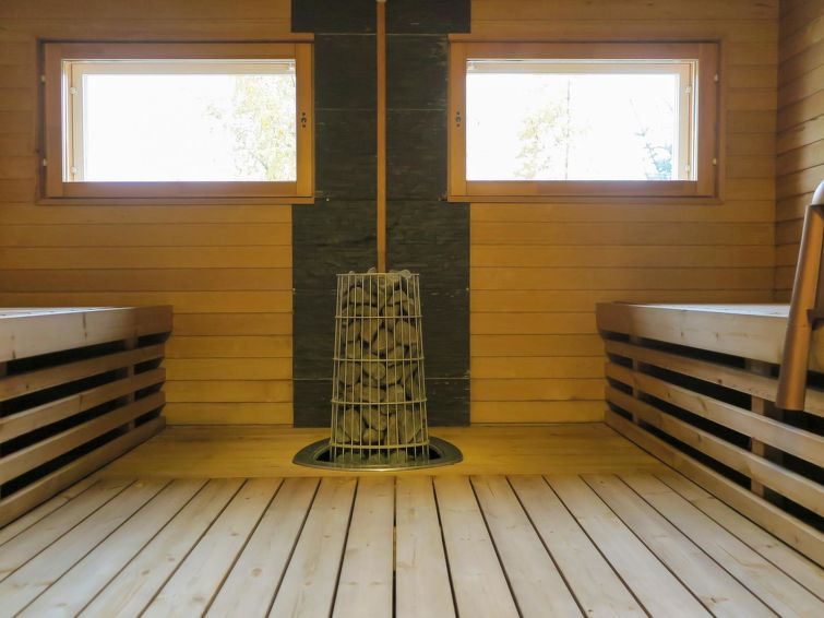 Sauna, washroom, dressing room, separate toilet, game room upstairs (not for sleeping), covered terrace and open terrace.