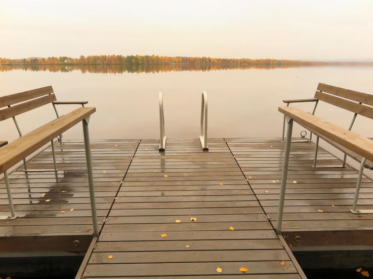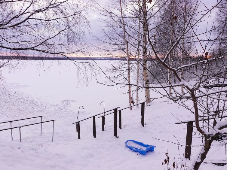 On the south side of the Rovaniemi town, close to the city services, by the Kemijoki beach, distance to the beach 11 m, river width 700 m, shallow beach, hard, rocky bottom, dock, stairs to the dock, own boat.