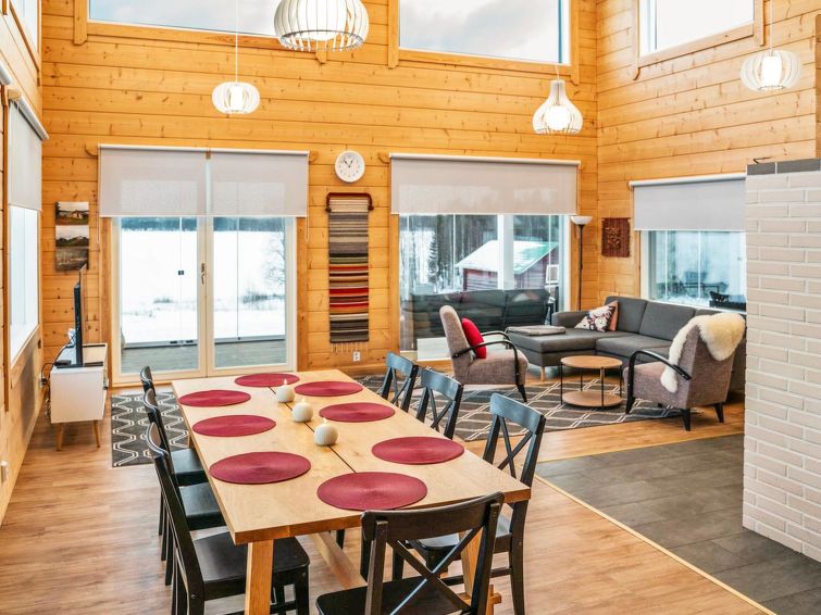 Villa Lehtoniemi is a magnificent large villa in the middle of beautiful landscape by the lake, half an hour's drive from the center of Rovaniemi. Thanks to the villa's many large windows, you can enjoy the surrounding scenery inside the villa. It is also possible to view the northern lights, for example, from the bedrooms, which are 5 in total.
