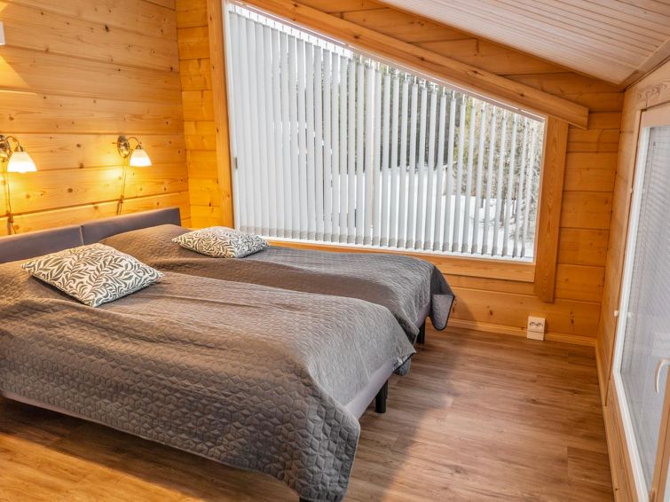 Log villa, completed in 2022. Facilities on two floors. On the ground floor, large kitchen and bedroom with double bed. Also sauna, washroom, dressing room, utility room and WC on the ground floor.