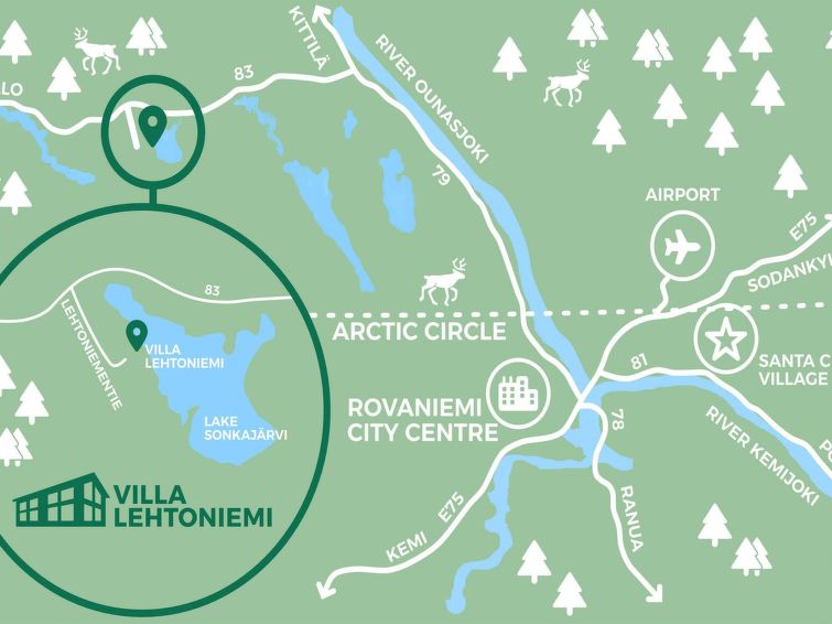 The Arctic Circle and Santa Claus Village 45 km, airport 45 km.