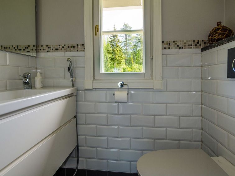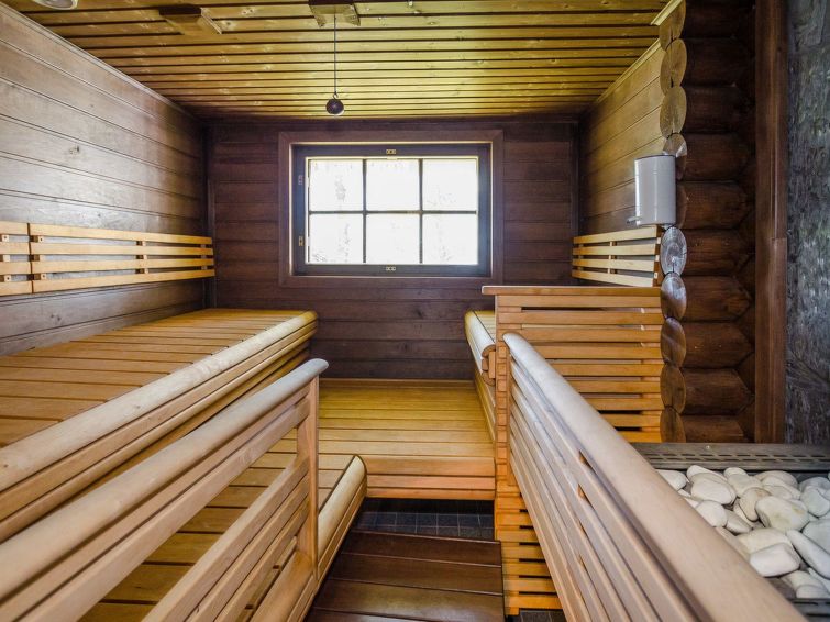 The cabin is equipped with wireless 4G internet connection and karaoke equipment. Air source heat pumps in the main building and in the sauna building. Glazed terrace with an electric oven and a wood stove.