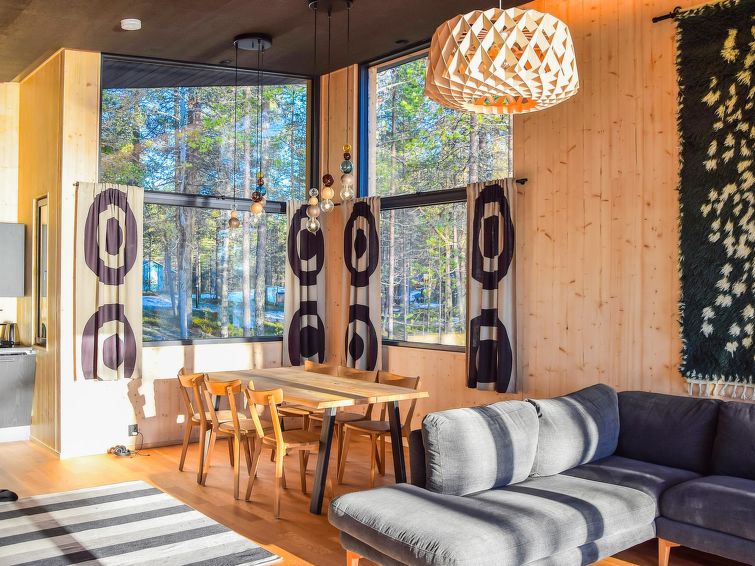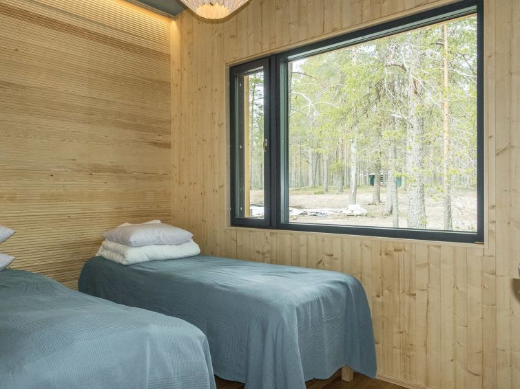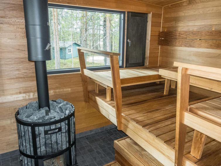 Wood-built villa, built in 2022. Spacious living room/kitchen, double bed in bedroom, two separate beds in second bedroom (can be attached if needed), 2 folding mattresses (can be placed freely if needed), washroom/WC and covered terrace. The sauna has wood-burning sauna stove and water supply (cold and hot water), access to the sauna via a covered terrace.