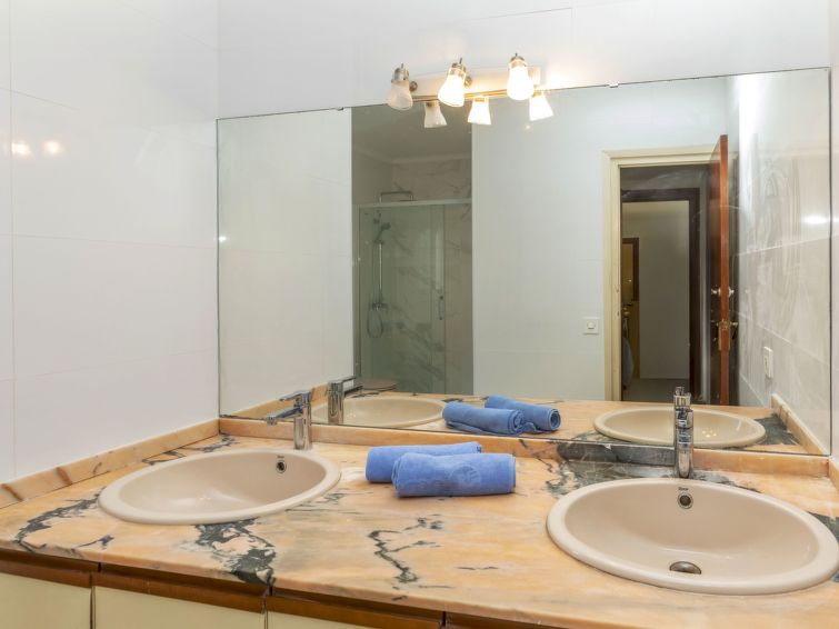 "Villa Mar", 5 rom villa 105 m2 på 2 etasjer. Romlig, komfortabelt og koseligt møbler: stor stue/spisestue med, spisebord, satelit-TV og digital TV. Utgang til sitteplass i hagen. 1 rom med 2 senger (90 cm lengde 190 cm). 1 rom med, 1 dobbeltseng (150 cm, lengde 190 cm). Utgang til sitteplass i hagen. Lite kjøkken (stekeovn, oppvaskmaskin, 4 keramiske kokeplater, brødrister, vannkoker, mikrobølgeovn, elektrisk kaffemaskin). Utgang til sitteplass i hagen. Bad/bidé/WC, dusj/WC. Oppvarmingsalternativ. øverste etasje: 1 rom med 2 senger (90 cm lengde 190 cm). Utgang til terrassen. 1 rom med, 1 dobbeltseng (150 cm, lengde 190 cm). Gjennomgangsrom med, air-conditioning. Bad/bidé/WC, dobbel servant. Terrasse, sitteplass i hagen. Terrassemøbler, grill (flyttbar). Fasiliteter: vaskemaskin, strykejern, hårføner. Internett (trådløs LAN [WLAN]). Parkeringsplass (inngjerdet, 2 Biler) ved hbrukt. Vennligst merk: velegnet for familier. Kjæledyr/små hunder tillatt 2 kjæledyr/små hunder tillatt. Bare TV ES, DE, FR. HUTT007606