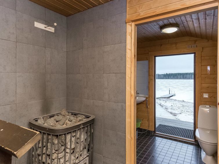 Separate lakeside sauna 25 m² with wood-burning sauna stove, washroom with shower and WC, fireplace room with two extra beds. Extra beds can be also arranged to the main building with extra mattresses.