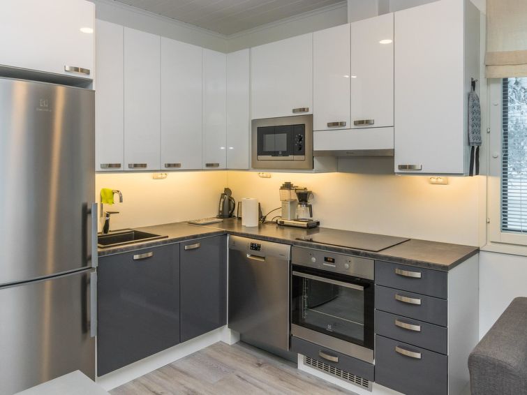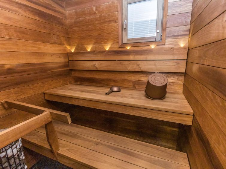 The apartment was built in 2019 and has a space of 56 m², with a living room kitchen, 2 bedrooms, in one bedroom a double bed 160 cm and in the other a double bed 140 cm, in addition a sofa bed in the living room for 1-2 guests. Sauna, washroom, toilet, furnished terrace to the south. The apartment is equipped with basic crockery, coffee maker, kettle, toaster, electric mixer, stick blender, smart TV, iron and board, hair dryer