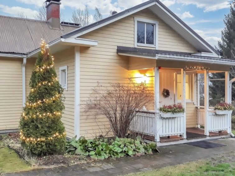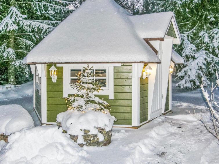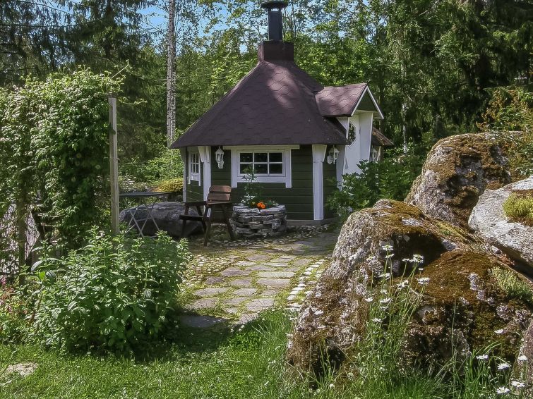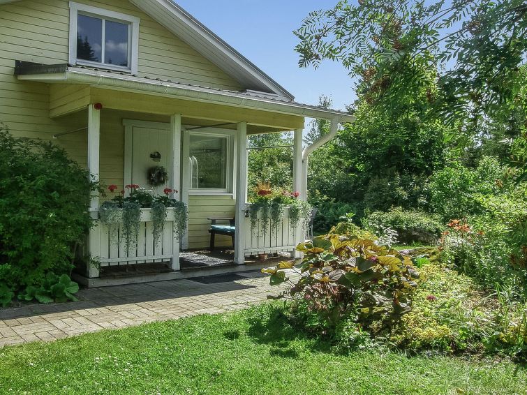 Wooden cottage, built in 1940, expanded in 1995 and renovated, and equipment renovated in 2012/2018. The living room / kitchen has a sofa that can be used as 2 separate beds, the bedroom has a double bed. Laundry room (washing machine), sauna, entrance hall (with freezer), small porch-terrace. Under floor heating.