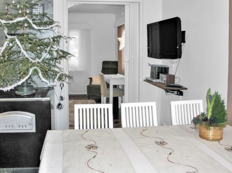 In the cottage Air heat pump for cooling and heating. The kitchen is also equipped with e.g. toaster, kettle, coffee maker, tableware for six people and versatile cooking utensils, in addition to an electric and wooden stove with a small baking oven.