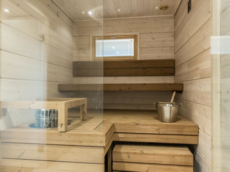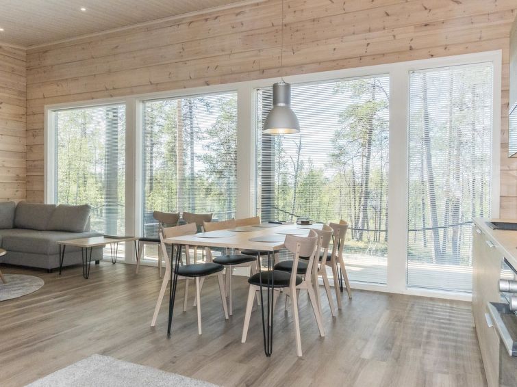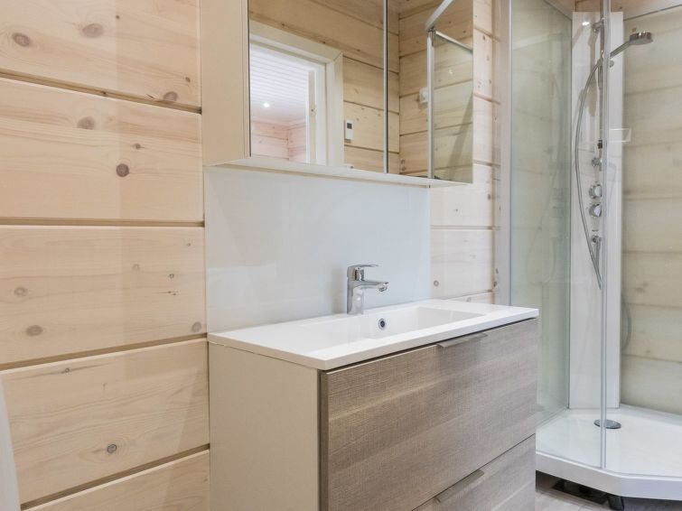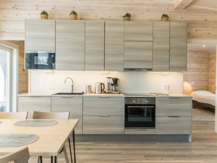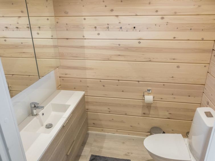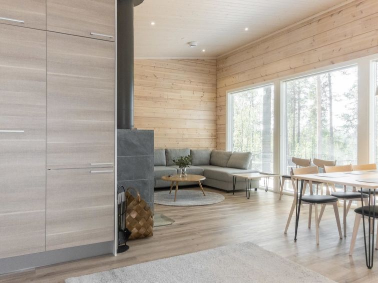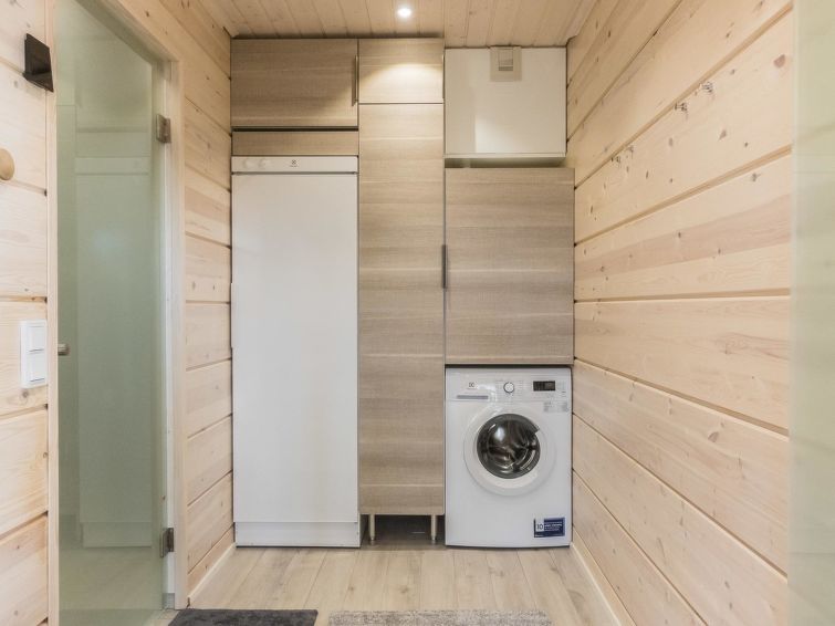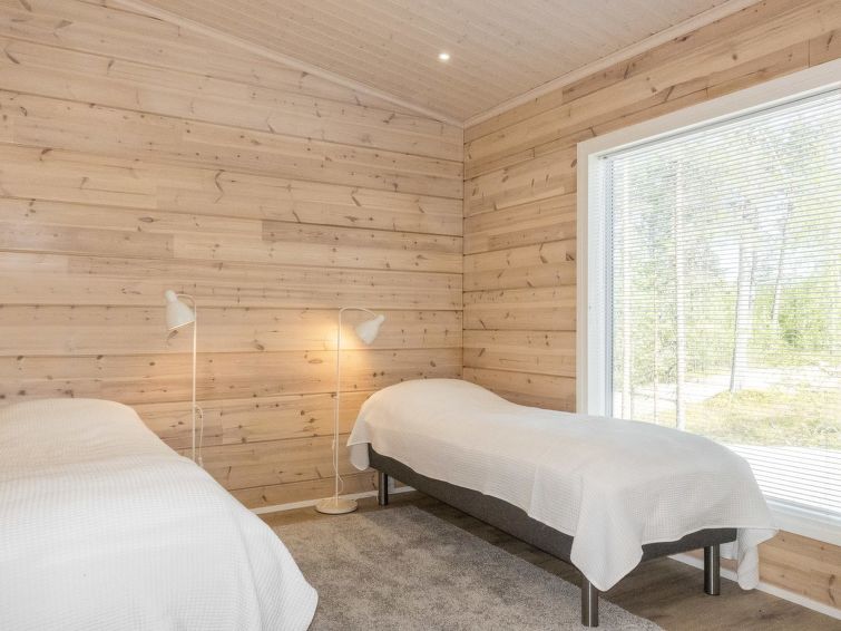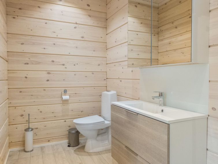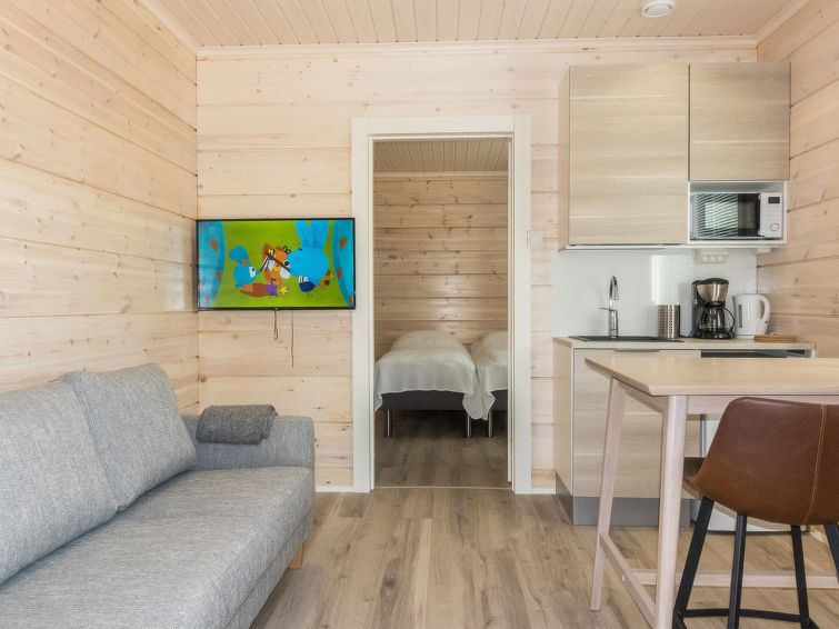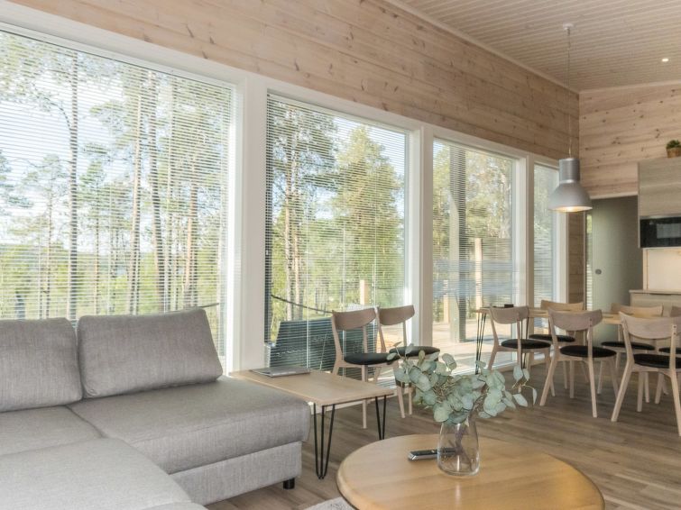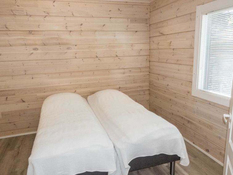 Log house (80 m²), built in 2022. Living room/kitchen with sofa bed, two bedrooms, both with two beds, sauna, washroom, utility room, separate WC and covered terrace. There is an outdoor hydro massage bath on the terrace, which can be used all year round.