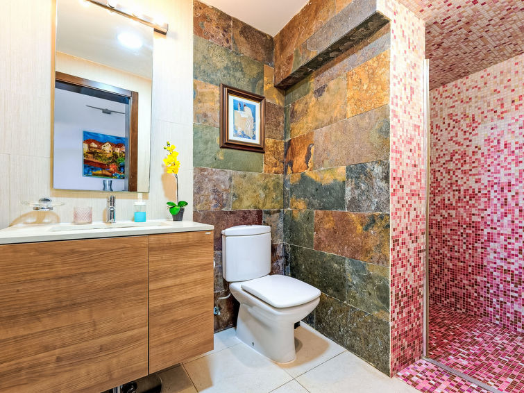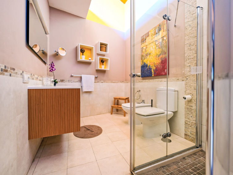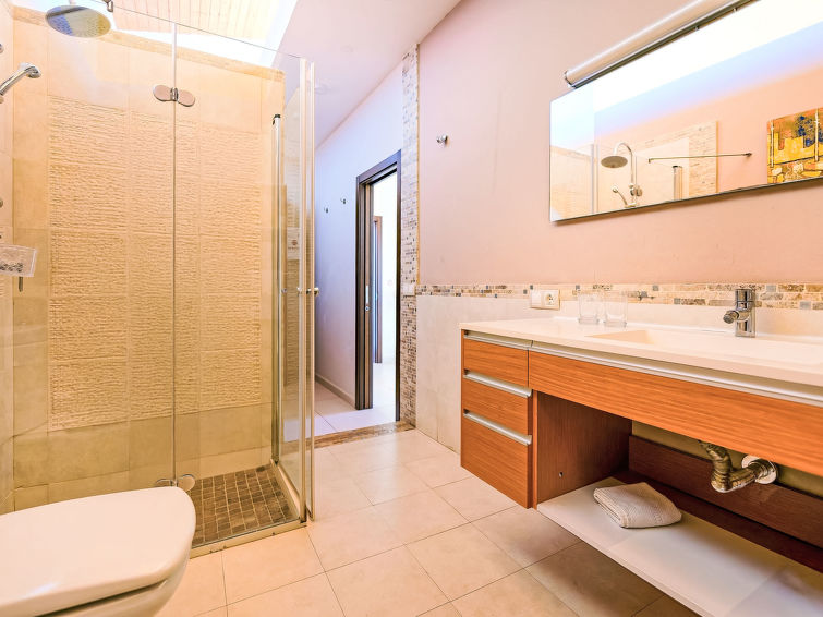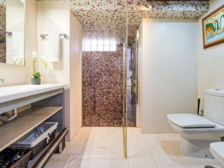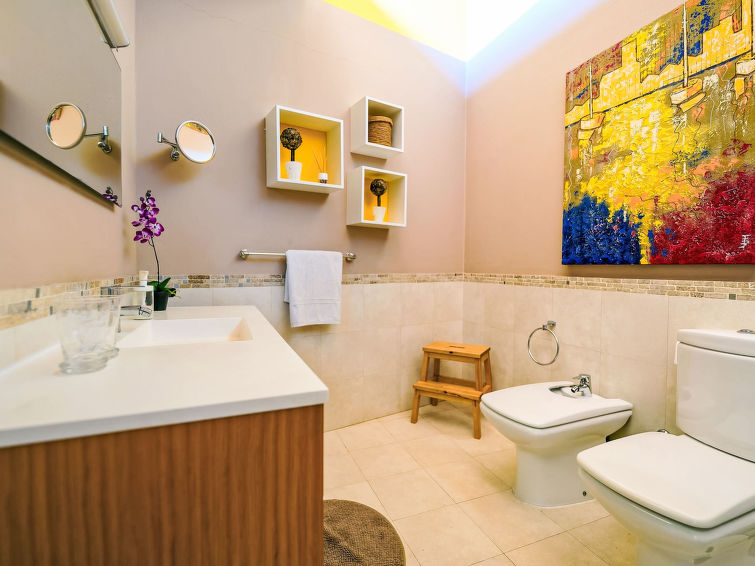 7 rom hus 280 m2 på 3 etasjer. Moderne og luksuriøst møbler: stue/spisestue med, spisehjørne, satelit-TV, digital TV, radio, DVD og air-conditioning. Utgang til hagen. 1 rom med, 1 dobbeltseng, dusj/WC og air-conditioning. 1 rom med, 1 dobbeltseng, 1 uttrekkbar seng og dusj/WC. 1 rom med 2 senger, satelit-TV og digital TV. Åpent kjøkken (stekeovn, oppvaskmaskin, 4 keramiske kokeplater, brødrister, vannkoker, mikrobølgeovn, frys, elektrisk kaffemaskin) med, spisehjørne. I underetasje: 2 rom, hvert rom med, 1 dobbeltseng. Sitteplass i hagen. Terrassemøbler, grill, liggestoler. Fasiliteter: vaskemaskin, tørketrommel, safe, strykejern, høy barnestol barneseng for barn opp til 2 år, hårføner. Internett (trådløs LAN [WLAN], gratis). Parkeringsplass (inngjerdet). Vennligst merk: velegnet for familier. Røykfritt hus. 2015/1643