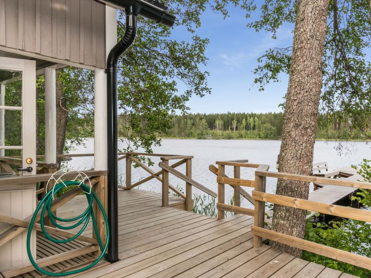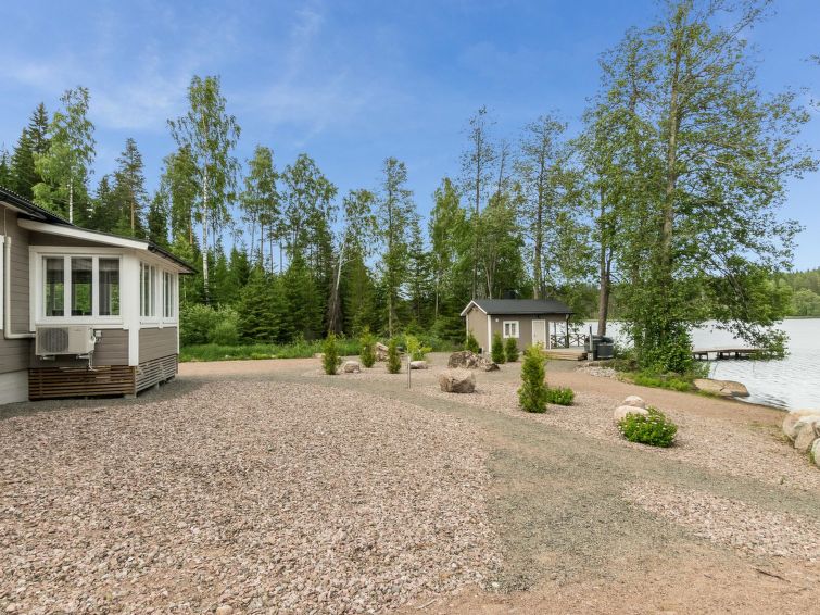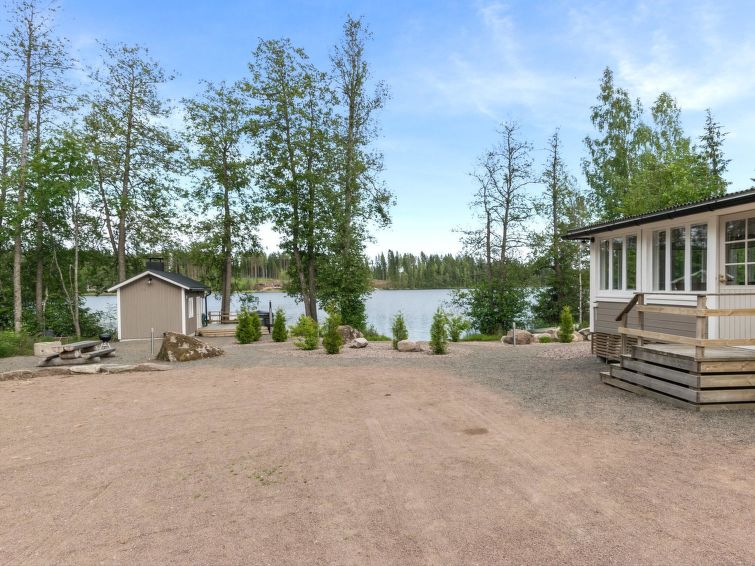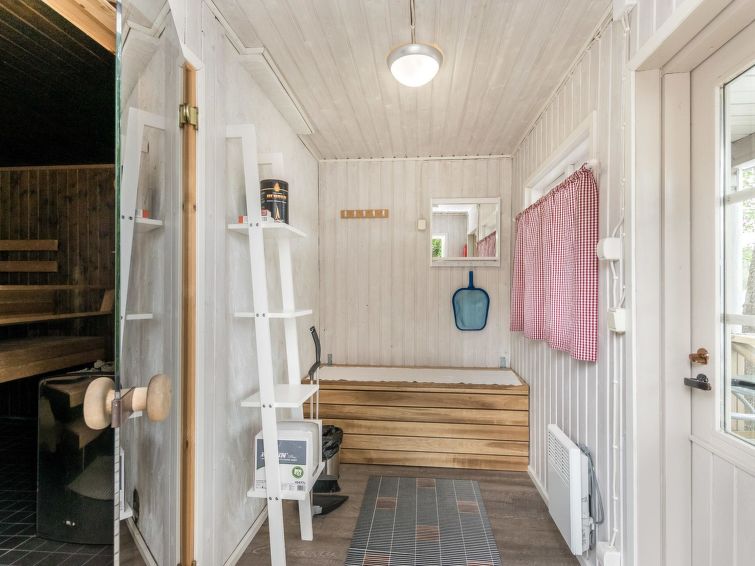 For summer use only: Lakeshore sauna built in 1964, 15 m², wood-burning stove and hot water cauldron, dressing room, electric light and radiator, carrying water from the lake 5 m away, terrace 20 m². Wood-burning hot tub at extra fee; can be used starting from 1.5. (first of May) till 30.10. (end of October) every year. The hot tub cannot be used at other months. Warming and emptying of the hot tub by the client. Owner will fill hot tub before reservation and clean it after reservation. Afterwards reservation of the hot tube 140e.